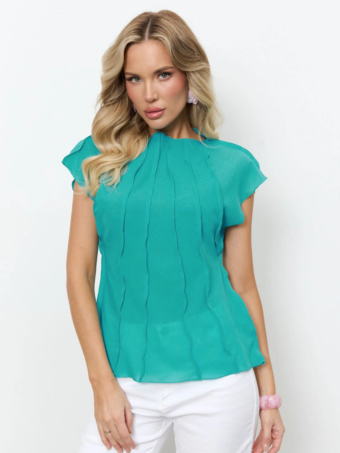Блуза из креп-шифона с декоративными вертикальными отстрочками по всему изделию.