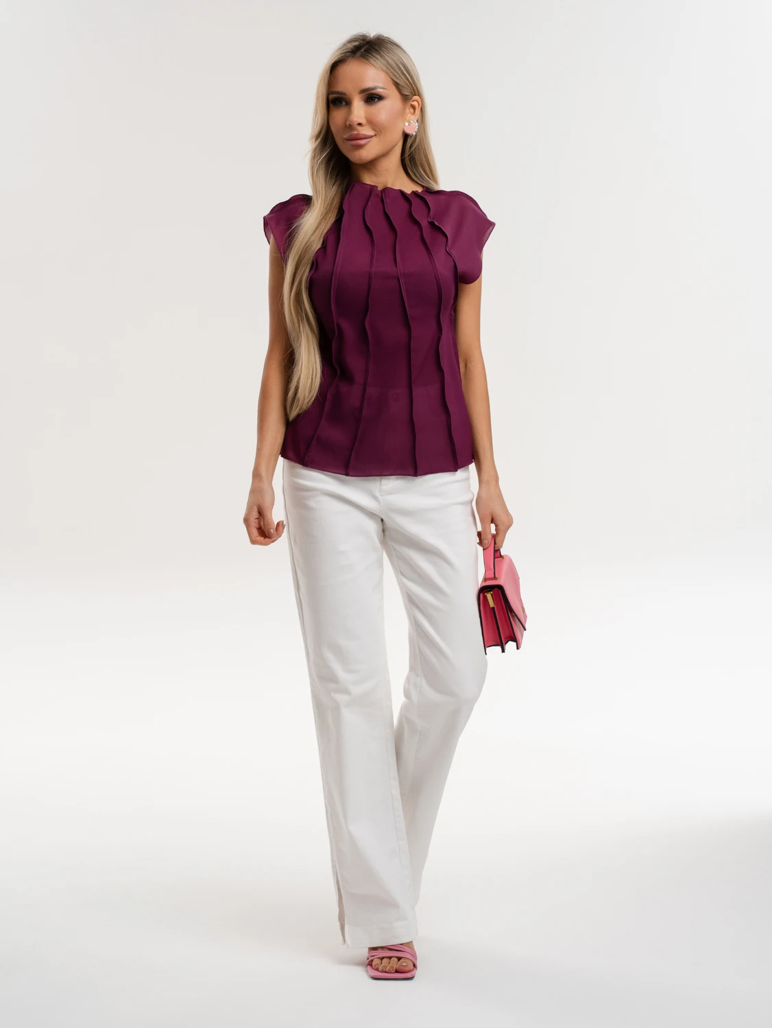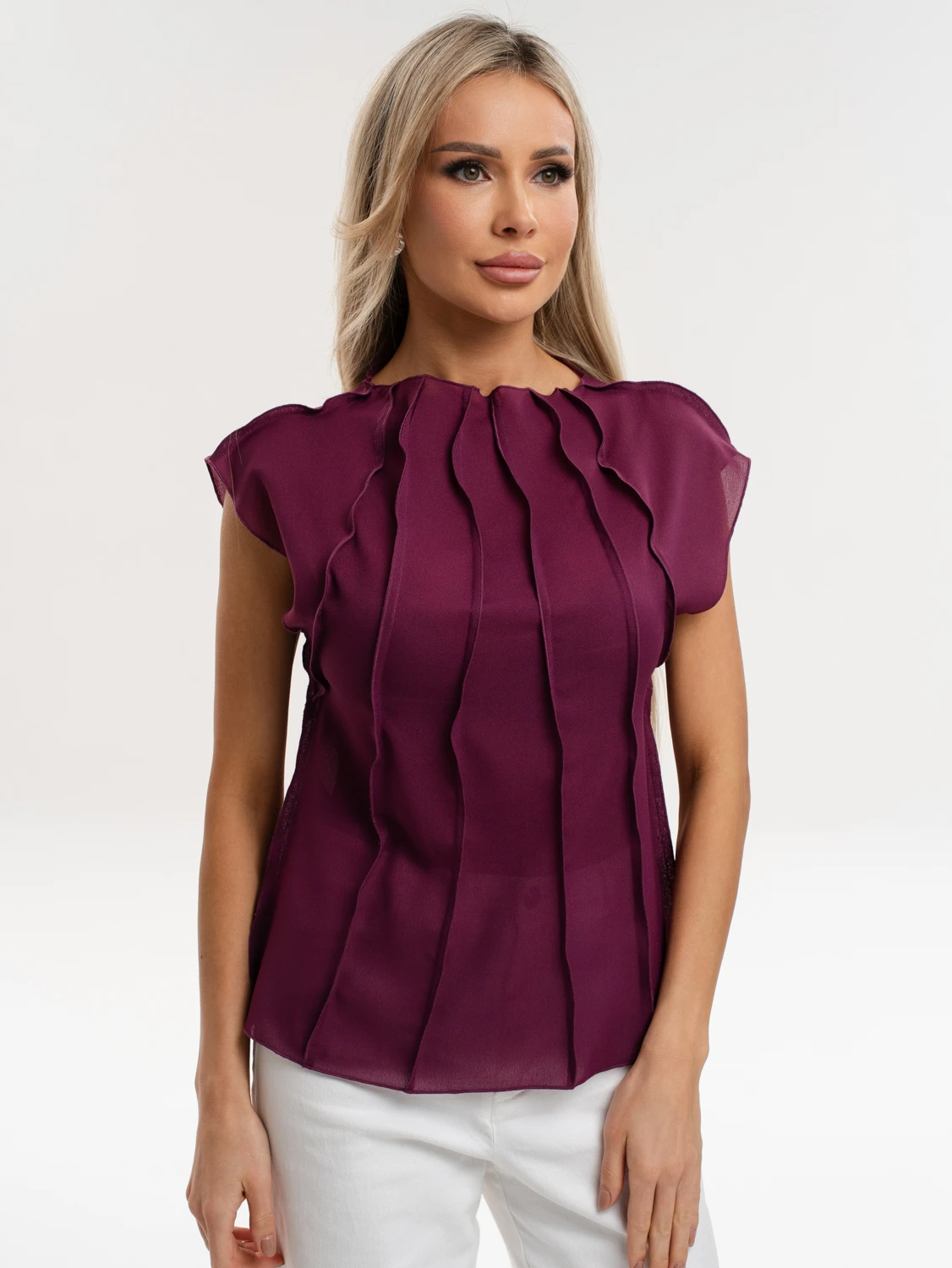 Блуза из шифона с декоративными вертикальными отстрочками по всему изделию.