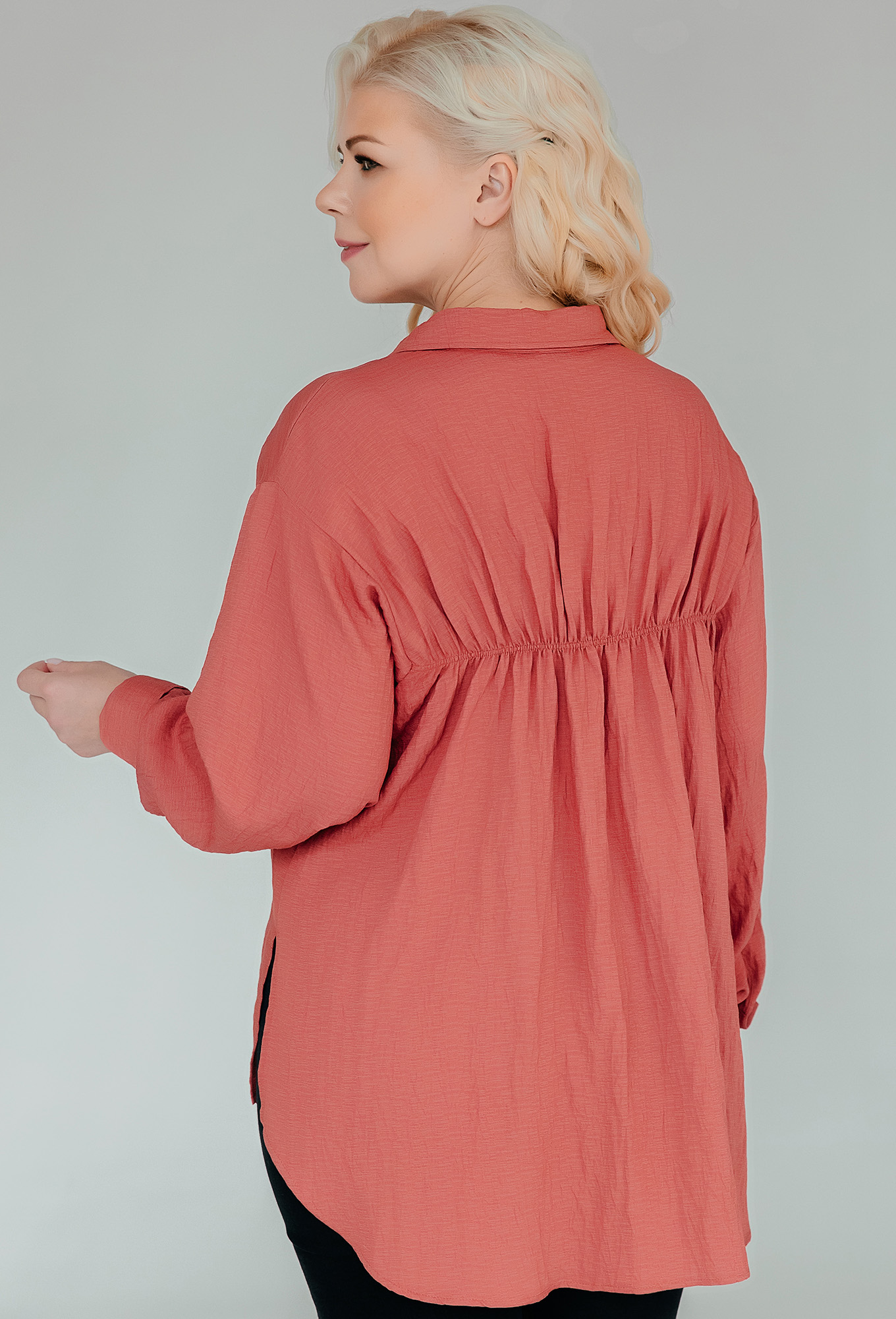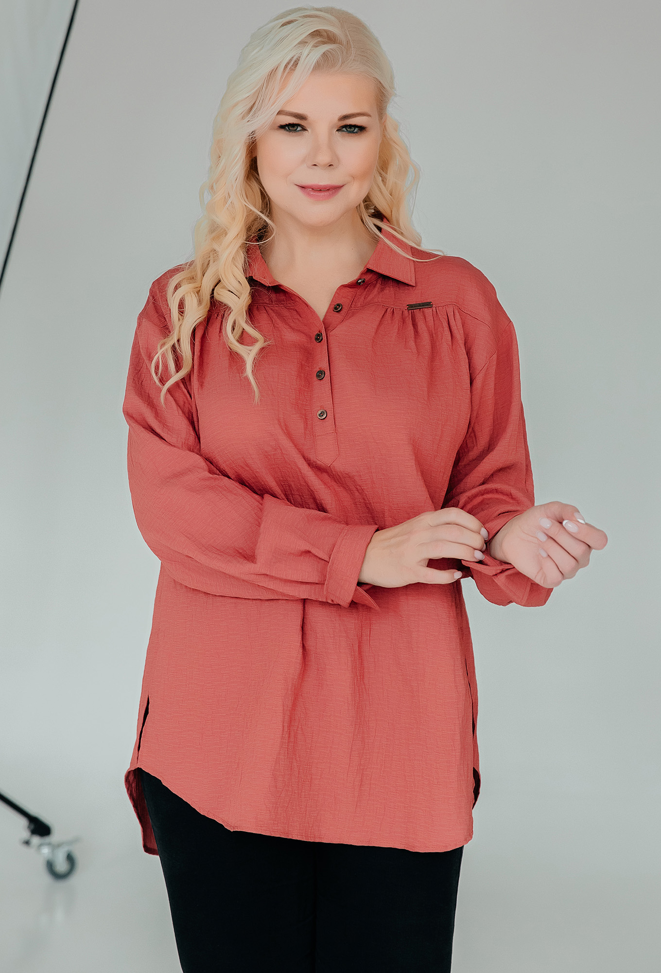 Модель: АСВ 2422 терракот Рост: 1..показать64 см (девушка на фото ростом 164см) Сезон: Круглогодичный Тип ткани: 85% вискоза, 15% нейлонБлуза прямого силуэта с длинным рукавом с манжетой. Горловина округлая с_x000D_