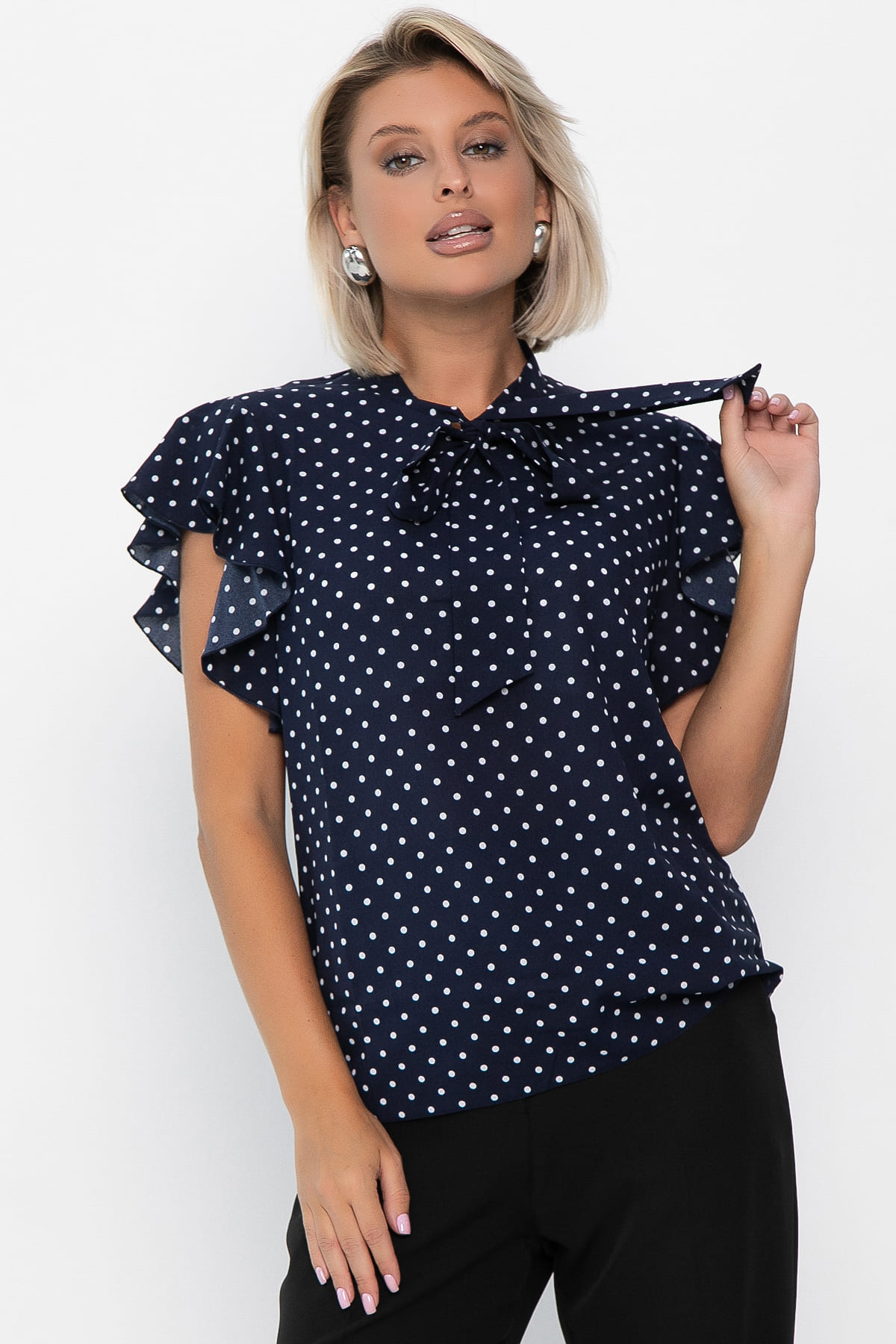 Добавьте в свой гардероб нотку романтизма с помощью нашей изящной блузки! Эта модель отличается нежными рукавами-крылышками, которые с легкостью подчеркивают ваши плечи и создают воздушный образ. Особо стоит отметить изысканный бант на горловине, который придает блузке шарм и элегантность. Можно носить под пиджаком, что делает её идеальным вариантом для работы или деловых встреч.