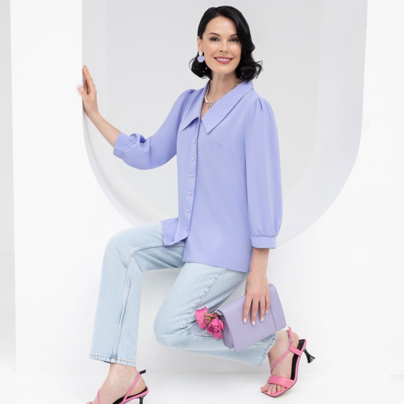 Campo di Lavanda! Эта модель превращает скучный офис в цветущее лавандовое поле! Ткань держит форму, силуэт убирает акцент с талии. Глаза отдыхают на этой чудесной блузе от CHARUTTI. Он захочет любоваться весь день! И вечер!