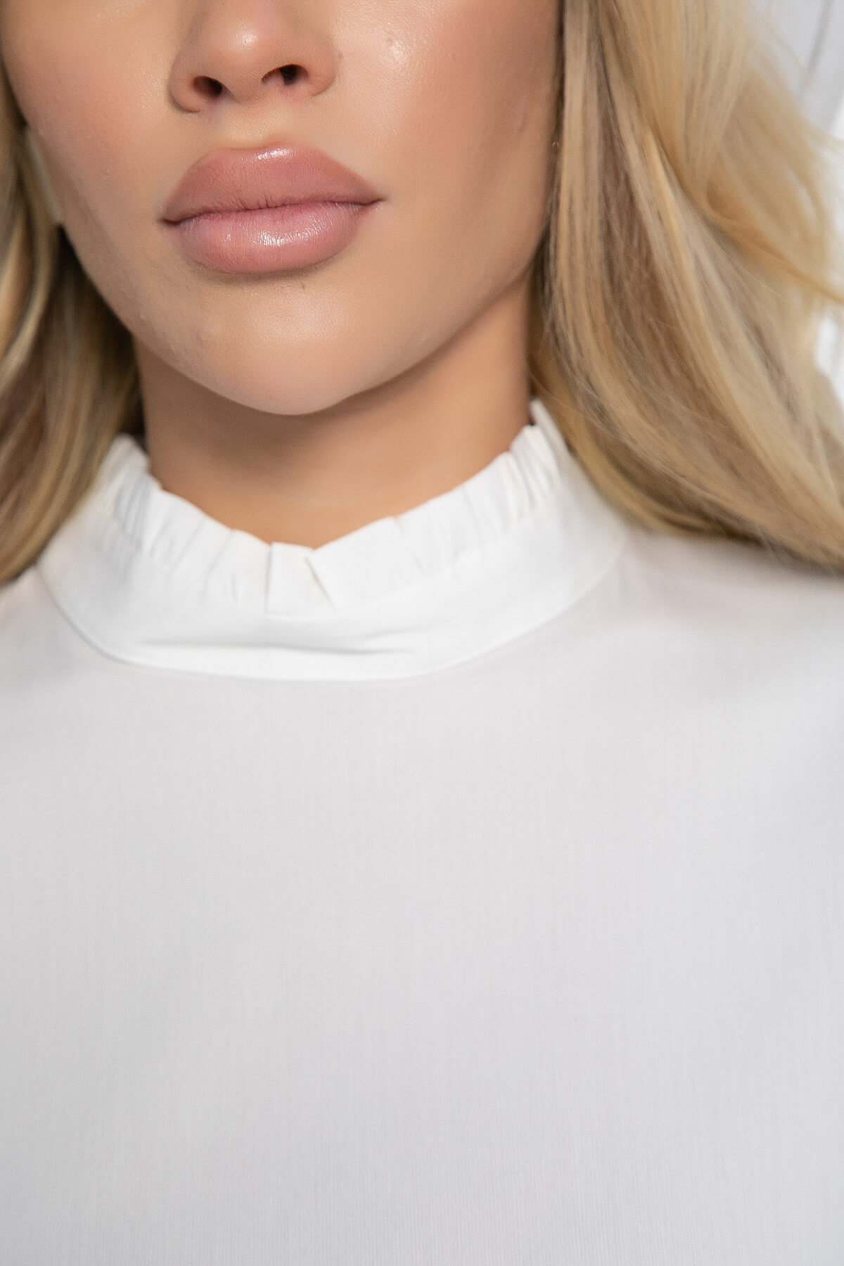 Модель свободного кроя с длинным рукавом и воротником-стойкой станет прекрасным дополнением к вашему офисному гардеробу, а также подойдёт для особых случаев. Её элегантный дизайн подчеркнёт вашу индивидуальность и создаст изысканный образ.