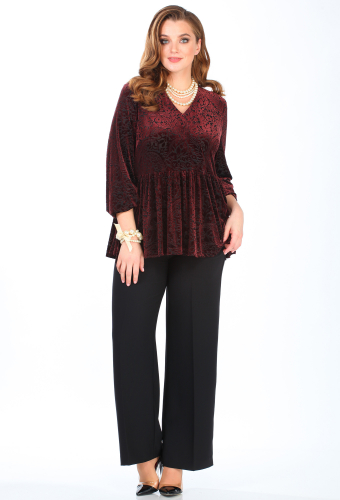 Модель: Эллетто 3378 бордо Рост: ..показать164 см (девушка на фото ростом 170см) Сезон: круглогодичный Тип ткани: полиэстер 74%, вискоза 23%, спандекс 3%Блузка женская, нарядная, длиной ниже линии бедер, по низу обработана воланом, из основной ткани. Рукав втачной, одношовный, длиной 3/4, по низу обработан притачной манжетой переходящей в тесьму- завязку. Вырез горловины обработан обтачкой. Пояс не отлетной из основной ткани