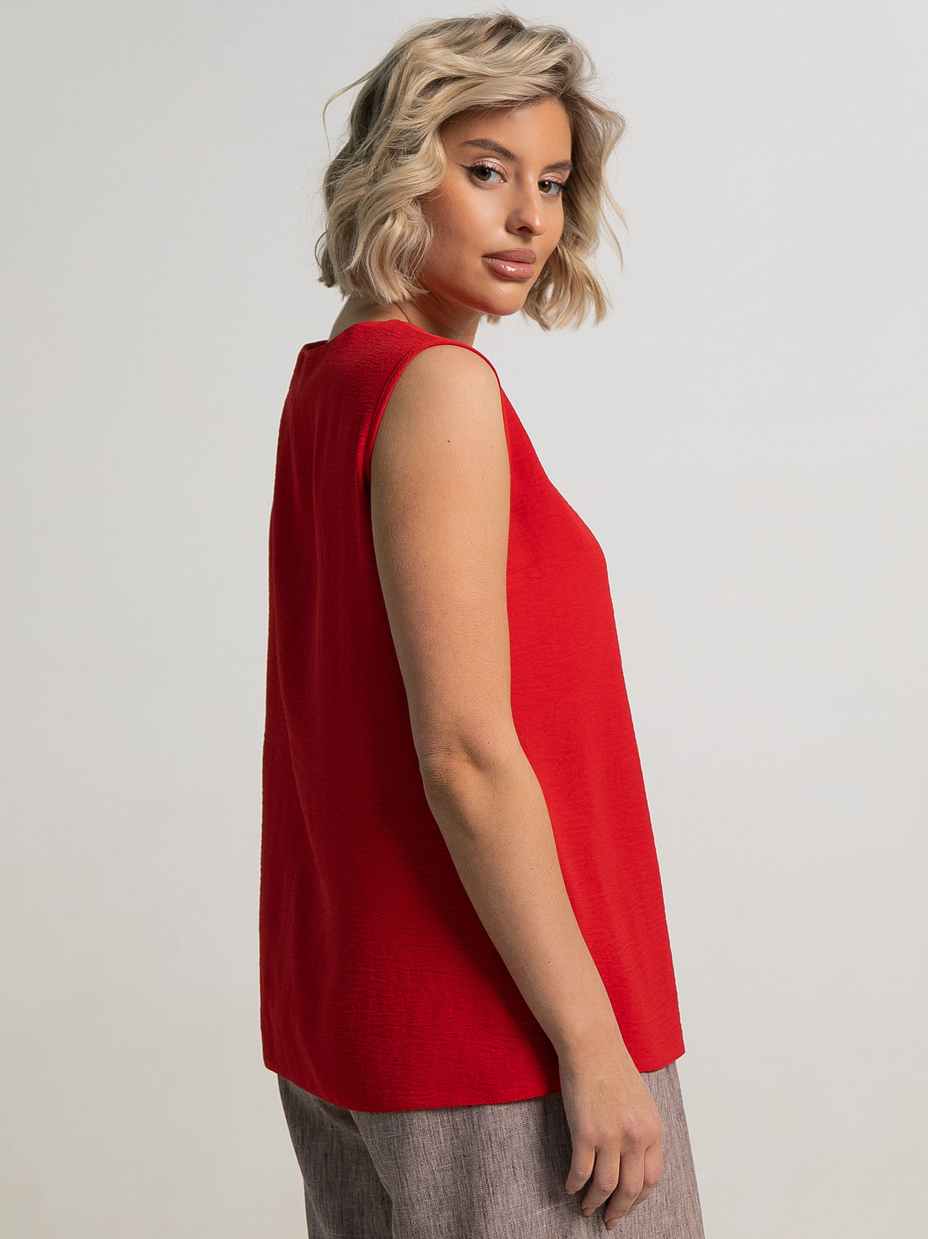 Летняя блуза без рукавов красного цвета — идеальное дополнение вашего гардероба для жарких дней. Она выполнена из легкого материала, который дарит комфорт и свободу движений. Нежный голубой оттенок создает атмосферу свежести и легкости, а воздушный силуэт подчеркивает фигуру, не стесняя движения. Сочетайте ее с легкими шортами, юбками или стильными джинсами — и ваш образ будет безупречен.