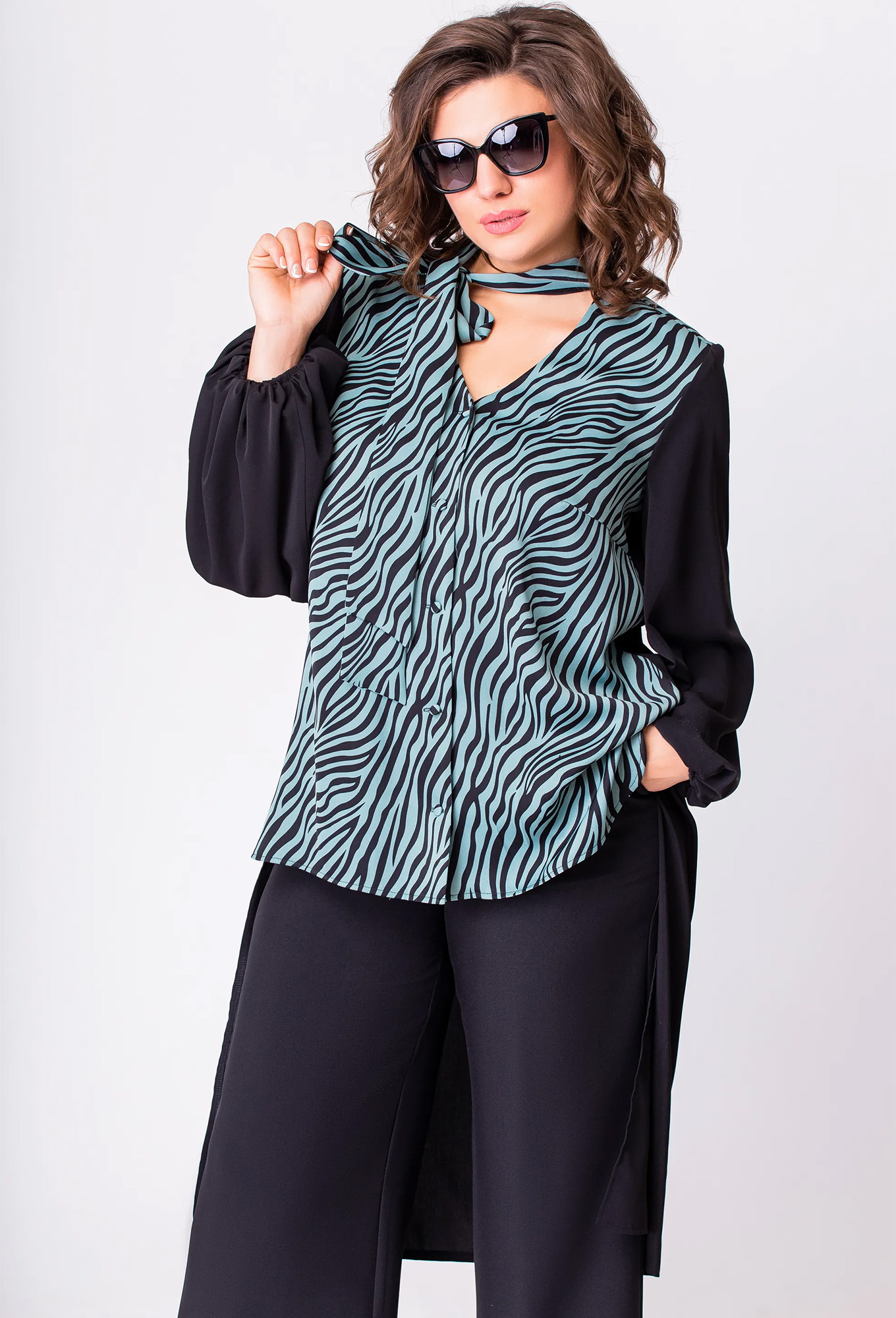 Модель: ЕВА ГРАНТ 2151 зелено-черный ..показатьРост: 170 см (девушка на фото ростом 170см) Сезон: Круглогодичный Тип ткани: Полиамид 74%, вискоза 21%, спандекс 5%Такая неординарная изысканная блузка - романтичный и невероятно женственный вариант блузки, в которой Вы будете выглядеть превосходно и приковывать взгляды окружающих! Блуза свободного силуэта с асимметричным низом, выполнена из крепа двух видов. Застёжка центральная на петли и пуговицы, рукав втачной, по низу собранный на резинку. Вырез горловины V-образный с воротником стойкой, переходящим в бант.Рост: 170 см (девушка на фото ростом 170см) Сезон: Круглогодичный Тип ткани: Полиамид 74%, вискоза 21%, спандекс 5%