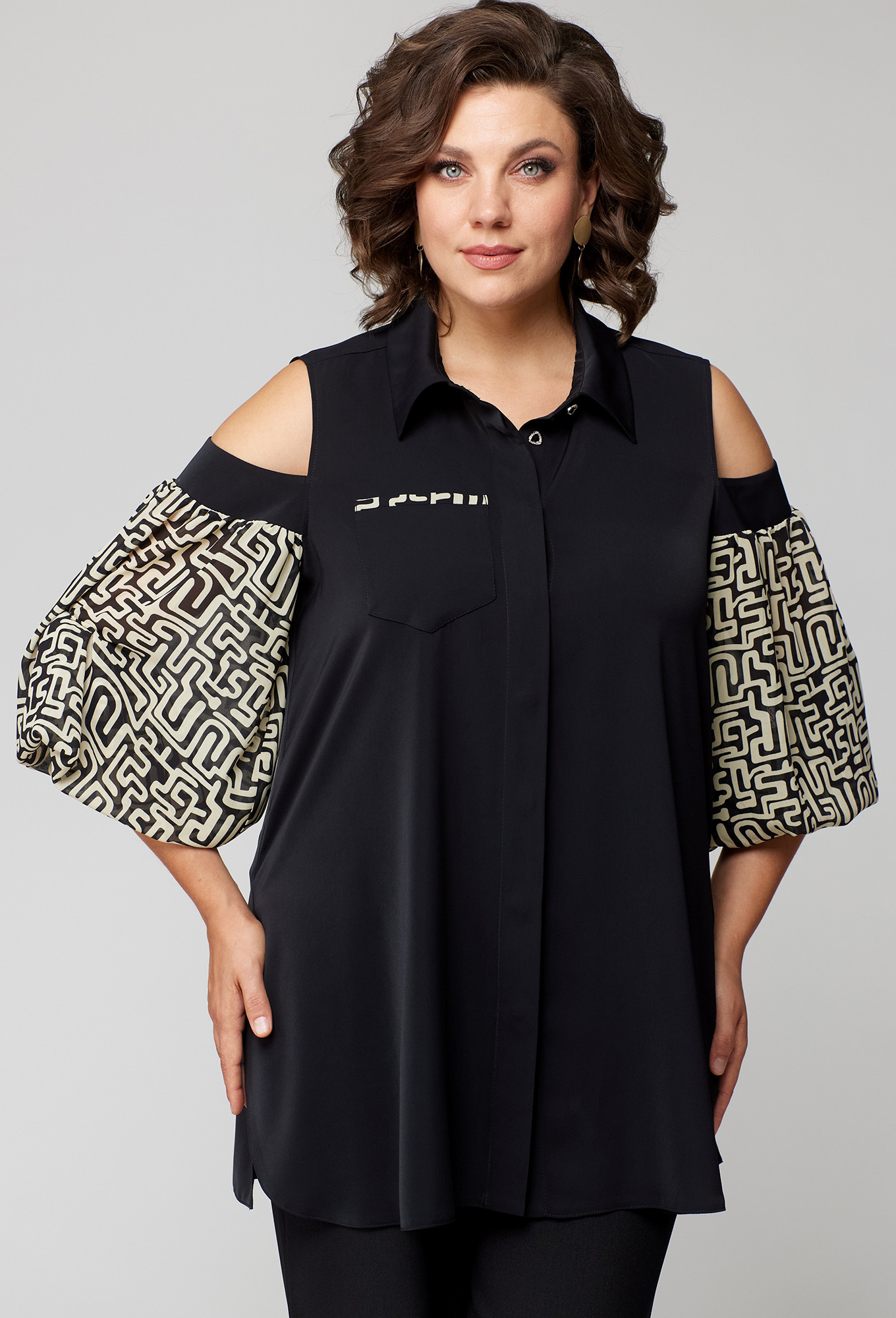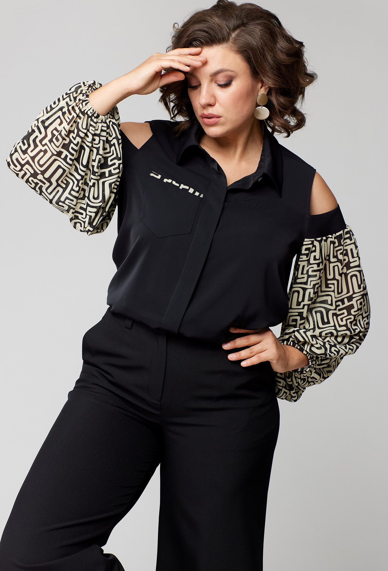 Модель: ЕВА ГРАНТ 7245-1 чёрный узор ..показатьРост: 170 см (девушка на фото ростом 170см) Сезон: Круглогодичный Тип ткани: Полиэстер 74%, вискоза 21%, спандекс 5%Блуза женская нарядная А-образного силуэта выполнена из плательно-блузочной ткани в сочетании с креп-шифоном. Вырез горловины воротник на стойке рубашечного типа. Застежка потайная доверху на обметанные петли и пуговицы. Рукав втачной из креп-шифона с открытым плечом со сборкой по верху и по низу. Низ рукава собран на резинку. В боковых швах обработаны разрезы. По правой полочке накладной карман. Декором служит принт на ткани рукавов и отделка по карману.Рост: 170 см (девушка на фото ростом 170см) Сезон: Круглогодичный Тип ткани: Полиэстер 74%, вискоза 21%, спандекс 5%