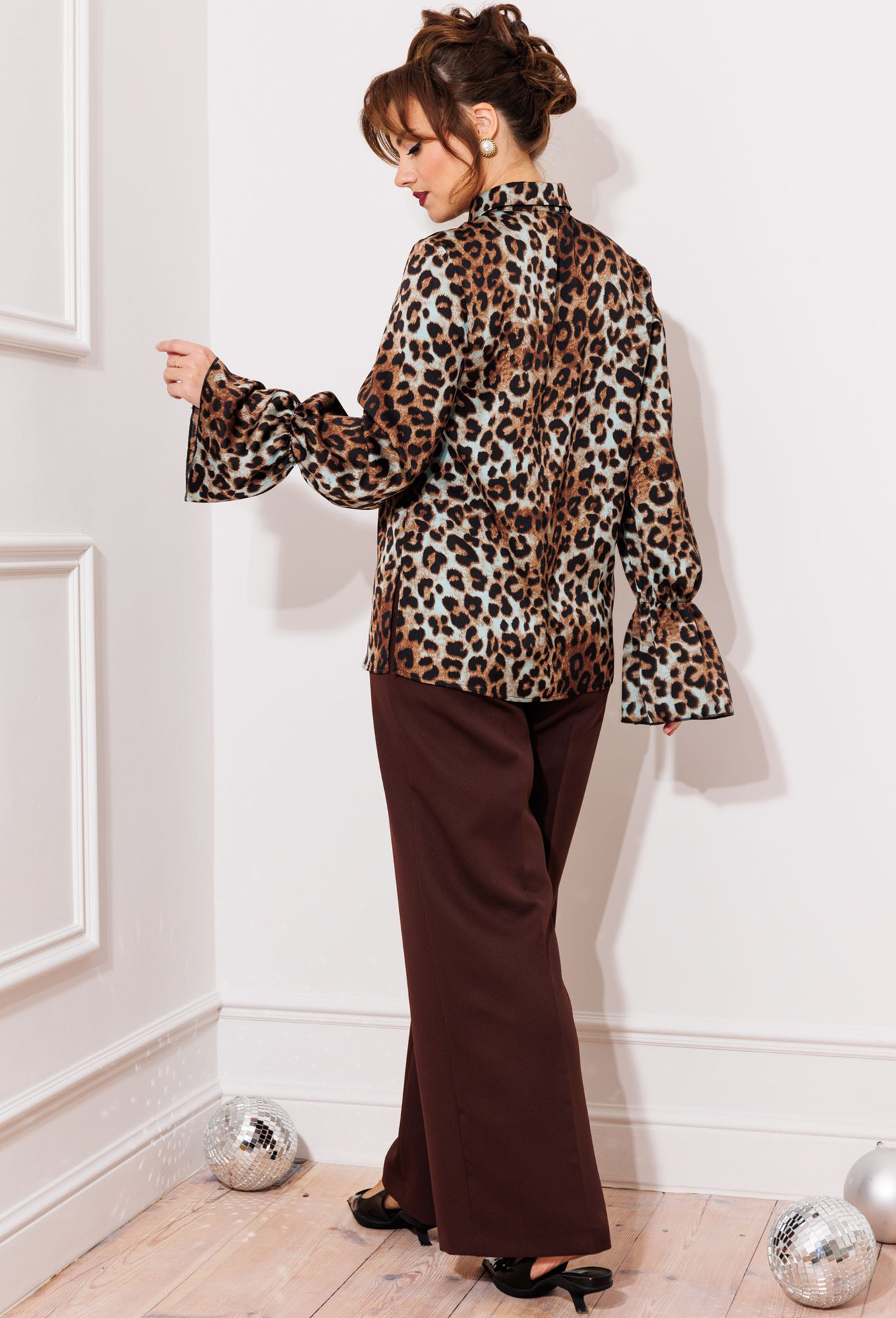 Модель: Гизарт 15350 леопард Рост..показать: 164 см (девушка на фото ростом 170см) Сезон: Круглогодичный Тип ткани: Полиэстер 100%Блузка свободного силуэта выполнена из блузочного атласа. Перед с нагрудной вытачкой. Застежка центральная с отрезной планкой на петли и пуговицы. Воротник со стойкой. В правой части переда в планку вставлена рюша. Рукав втачной одношовный со сборкой на резинку в нижней части с образованием волана. В боковых швах разрезы. Пуговица на стойке декоративная.