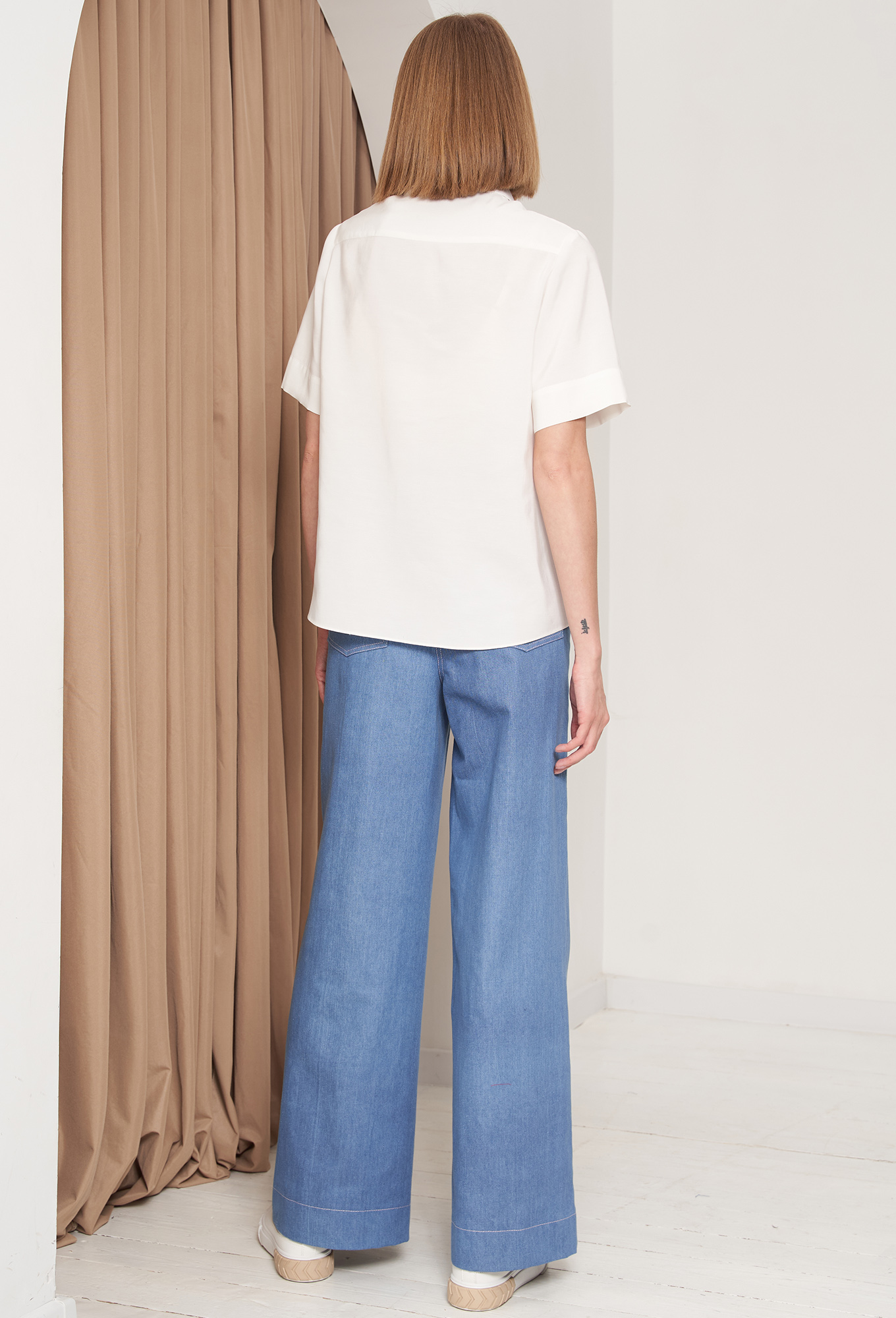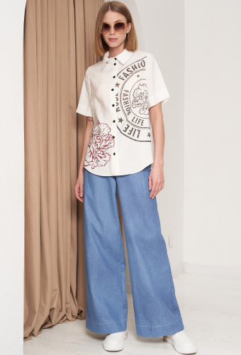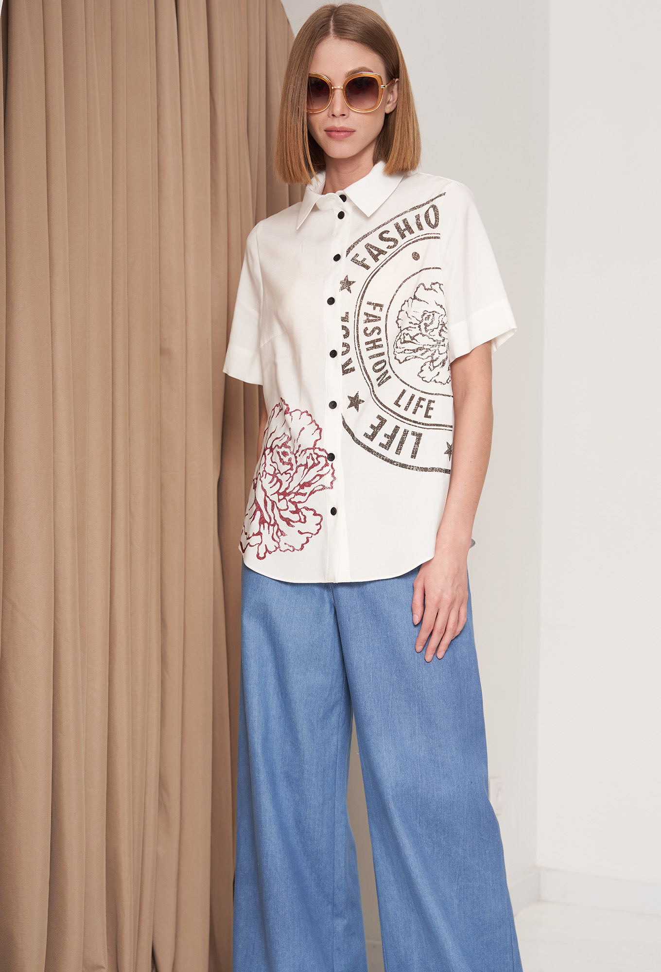 Модель: Гизарт 5208 молочный Рост..показать: 164 см (девушка на фото ростом 170см) Сезон: Весна-Лето Тип ткани: Вискоза 66%, нейлон 29%, спандекс 5%Блузка прямого силуэта с центральной застежкой на цельнокроеной планке. Воротник со стойкой. Перед с нагрудными вытачками. Спинка с кокеткой. Рукав одношовный с широкой подгибкой по низу. Низ рубашки фигурный.