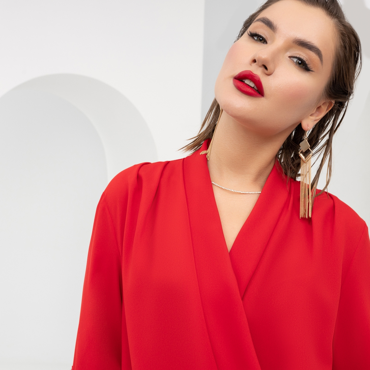 Блуза «Гордость и убеждение» в маковом цвете — это не просто элемент гардероба, это выражение вашего несгибаемого духа и утончённого стиля. Если вы ищете способ заявить о себе в мире моды, то эта блуза — ваш идеальный выбор. Шикарный креп-шифон нежно обнимает тело, предлагая абсолютный комфорт, а яркий маковый оттенок вдохновляет на смелые действия и привлекает всеобщее внимание. Представьте, как эта блуза станет центром вашего гардероба и как легко она поможет вам выделиться из толпы, будь то деловые переговоры, вечеринки или прогулки на свежем воздухе.