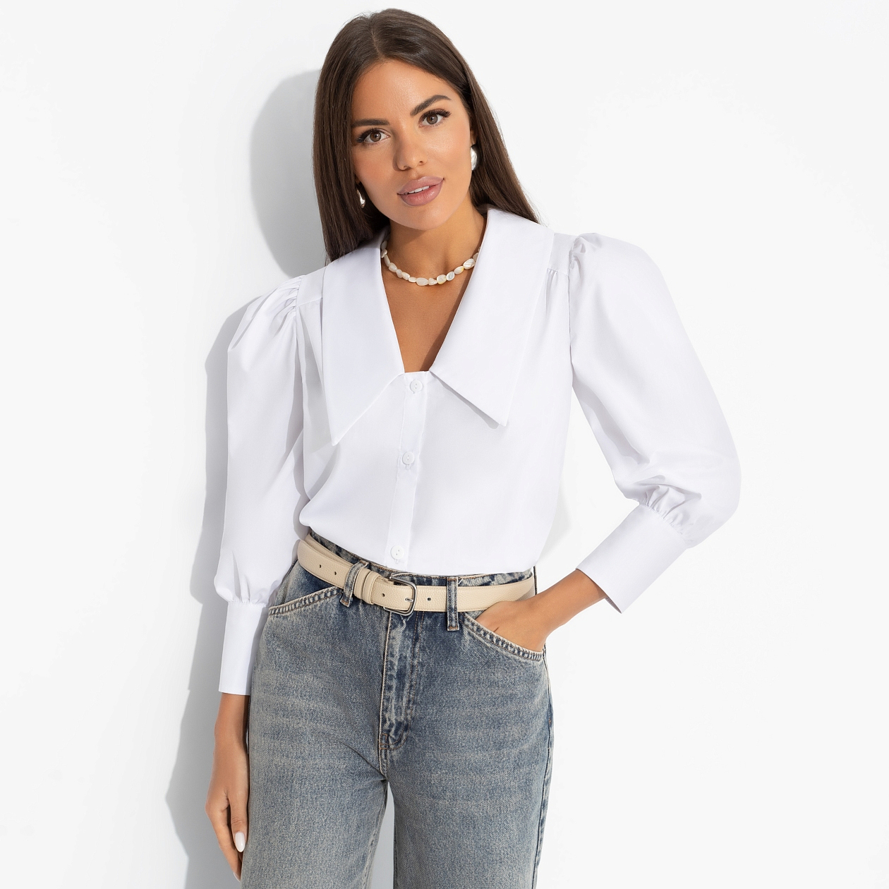 Её линия жизни безупречна – пятёрки в дневнике, красный диплом, стремительная карьера. Блуза ЧАРУТТИ словно символ этого пути. Каждая складка на ткани лежит идеально, словно её путь – ровный и продуманный. Когда она входит в переговорную, все понимают: перед ними – человек, у которого не бывает помарок, ни в отчётах, ни в образах. Блуза прямого силуэта с объемными рукавами-фонариками. Застегивается на пуговицы. Изделие хорошо смотрится на любом типе фигуры.
