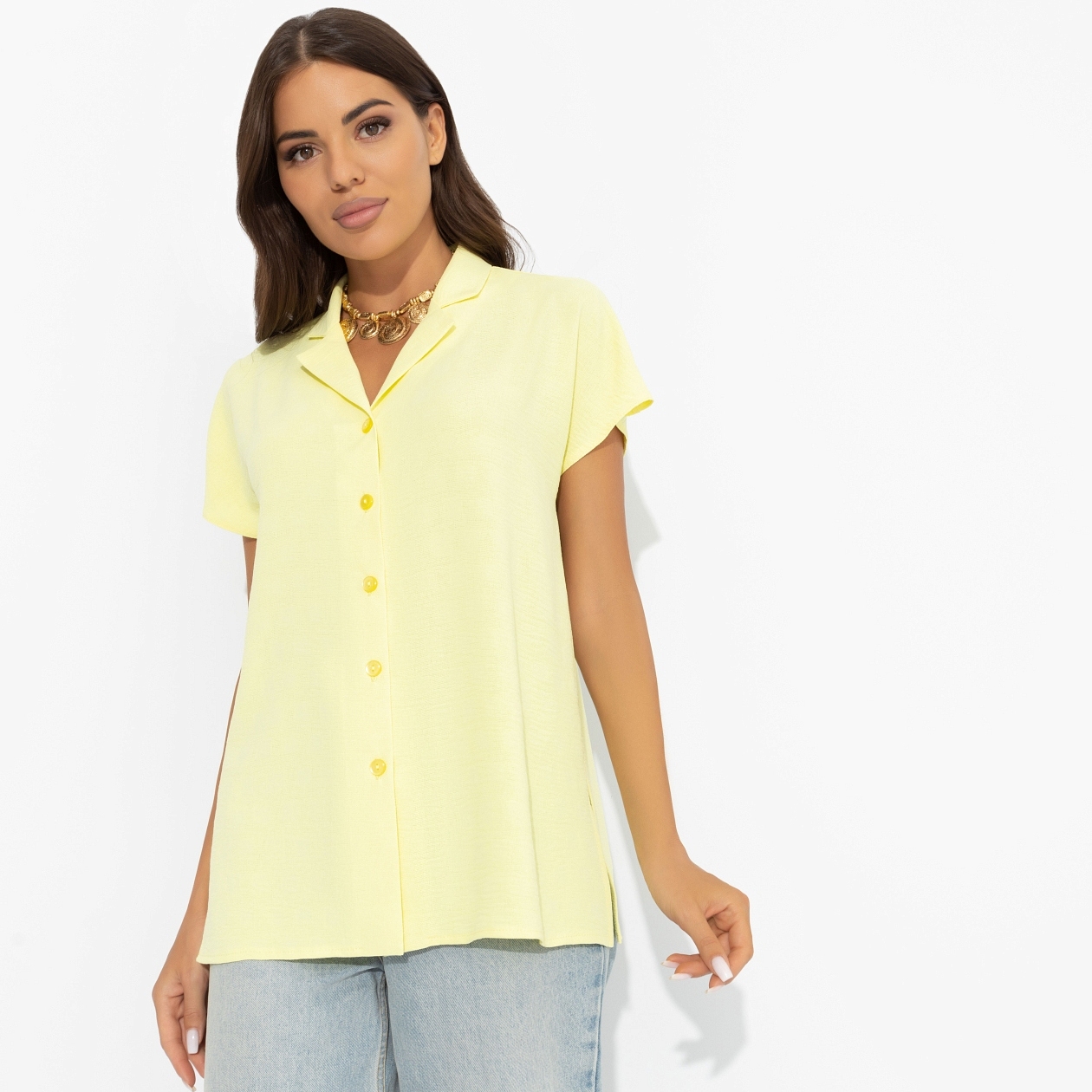 Ты увидела её в самом нежном сне. Невесомая, едва уловимая, с тонким призрачным ароматом сливочного масла… Безупречная блуза CHARUTTI в самом актуальном из оттенков сезона уже в наличии. Получается, что сон был вещим (от слова вещь). Блуза удлиненная свободного кроя. Спущенная линия плеча. Изделие застегивается на пуговицы. Деликатные разрезы по бокам. Блуза хорошо смотрится в заправленном виде и навыпуск.