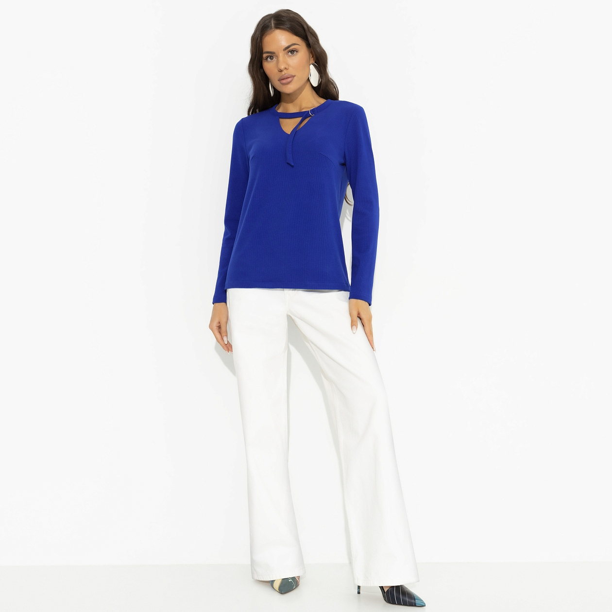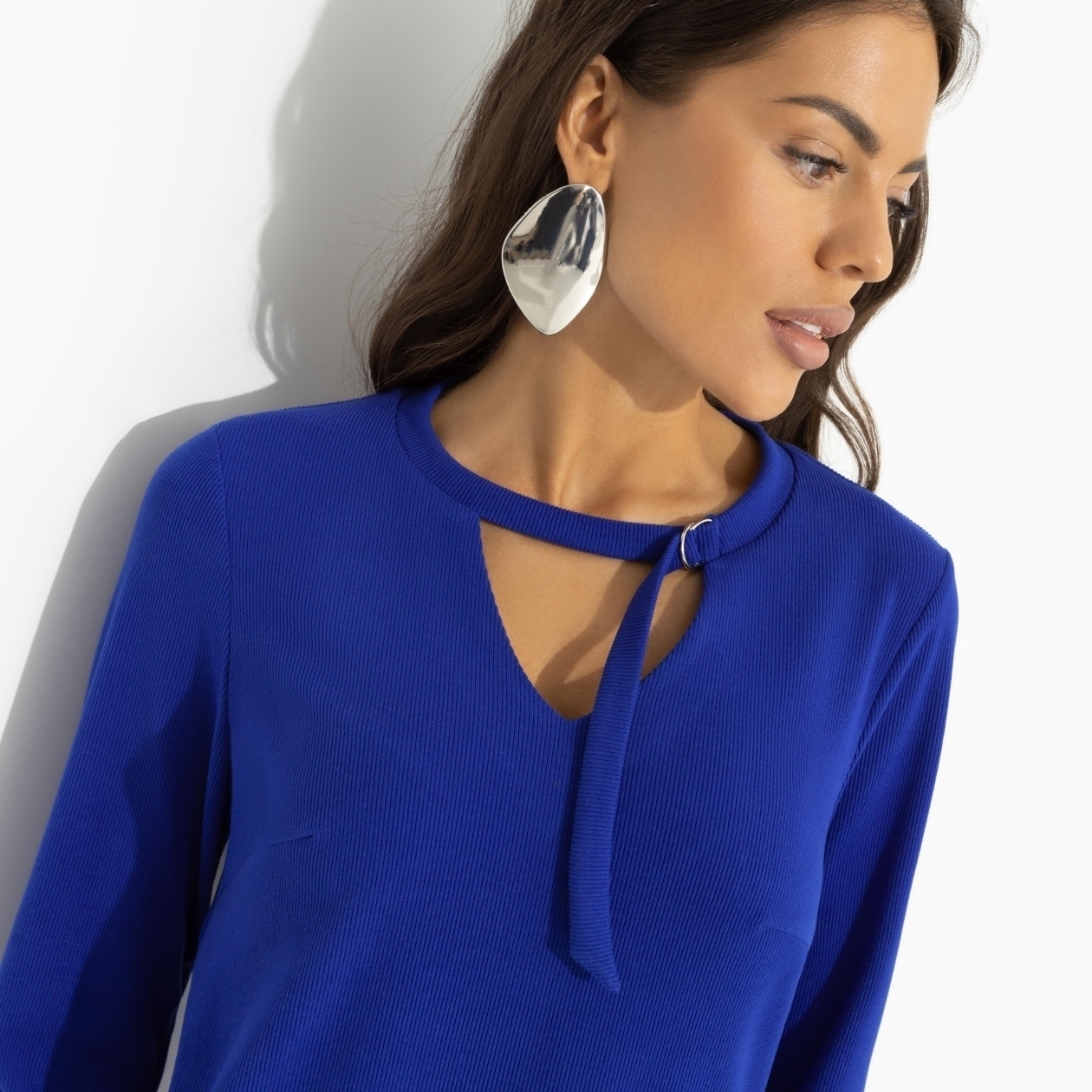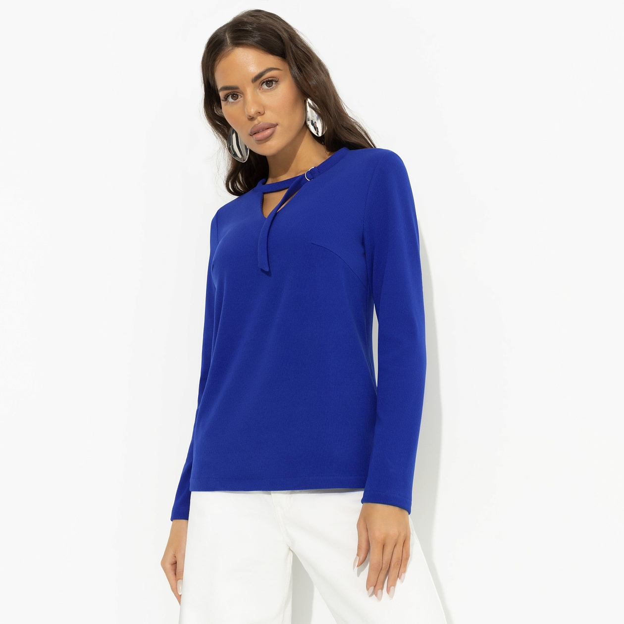 Мягкий трикотаж, яркий синий – и ты уже воплощение гениальности! В этой блузе можно сочинять симфонии, завоевывать мир и есть круассан без крошек. Талант неисчерпаем, как и стиль! Блуза классического кроя из мягкого трикотажа-лапша. Вырез в зоне декольте декорирован регулируемой застёжкой. Силуэт изделия прямой. Блуза хорошо смотрится в заправленном виде и навыпуск.