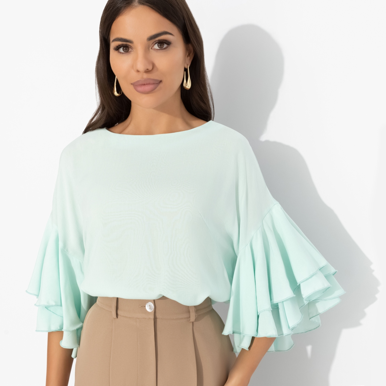 Блуза из вискозы с воланами, Молниеносная влюбленность (mint)