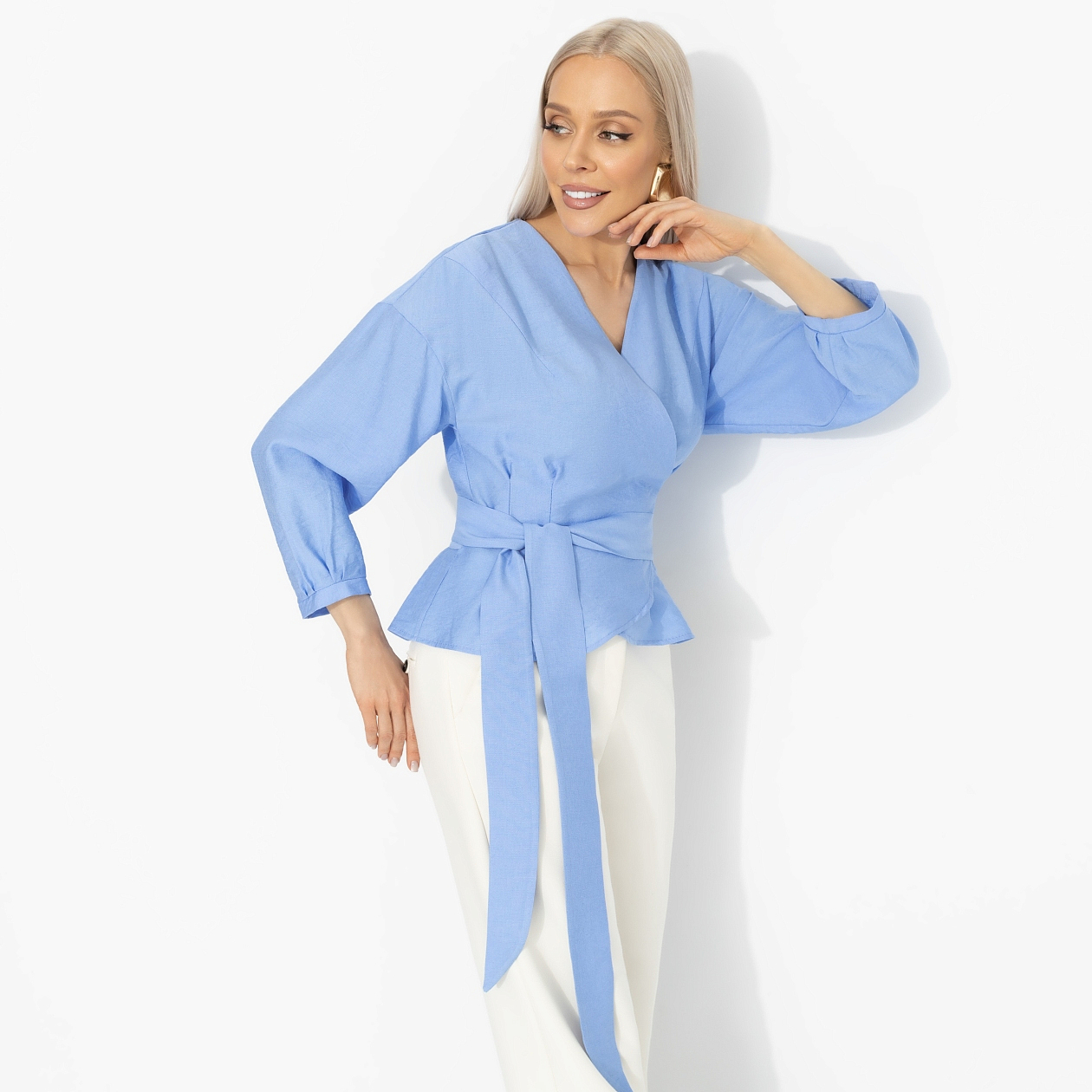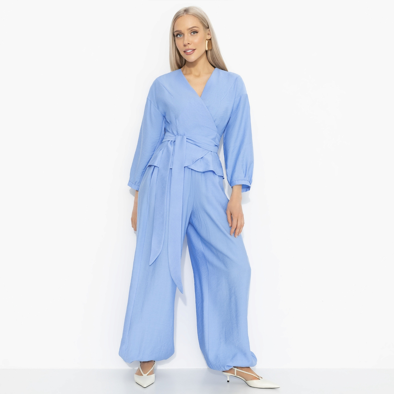 В Японии есть слово «югэн» – красота намёка, когда самое важное скрыто между линиями. Блуза «Восхитительные охваты» словно создана в этой философии: мягкий голубой оттенок, спокойные линии и утончённая простота. Эстетика джапанди, где жесты, ткань и силуэт говорят тише – но точнее. Блуза на запах из вискозной ткани с добавлением нейлона. Длинный рукав, мягкая линия плеча, пояс формируют изящный силуэт и красиво подчёркивают талию. Охваты твоих сторис будут просто вау!