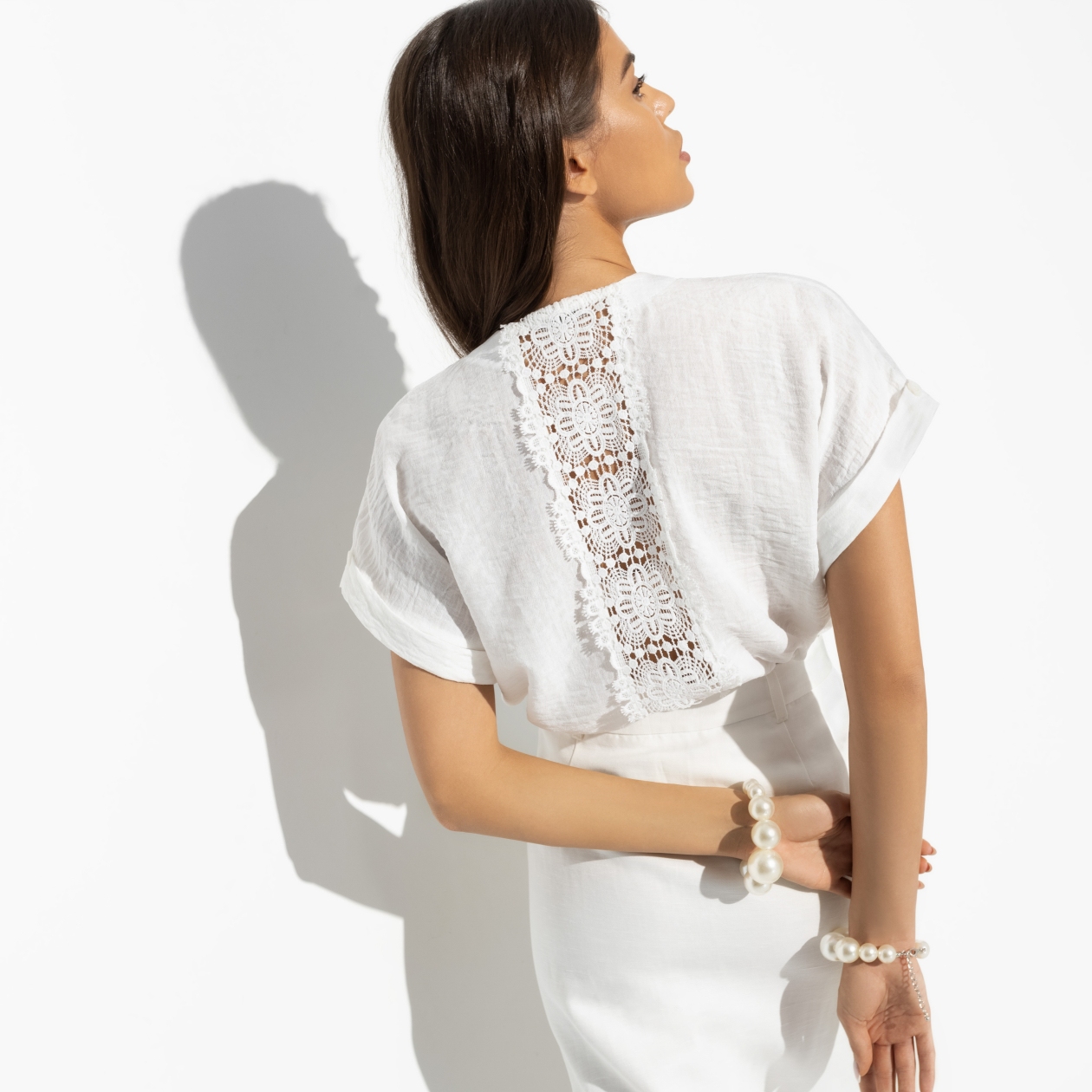 Блуза «Изящный намёк» от CHARUTTI — это воплощение элегантности и утонченности. Сочетание льна и кружева создаёт изысканный и романтичный образ. Белая блуза идеально подходит для любого случая, будь то деловая встреча, романтический ужин или прогулка по городу. В этой блузе вы будете выглядеть элегантно и привлекательно, привлекая восхищённые взгляды.
