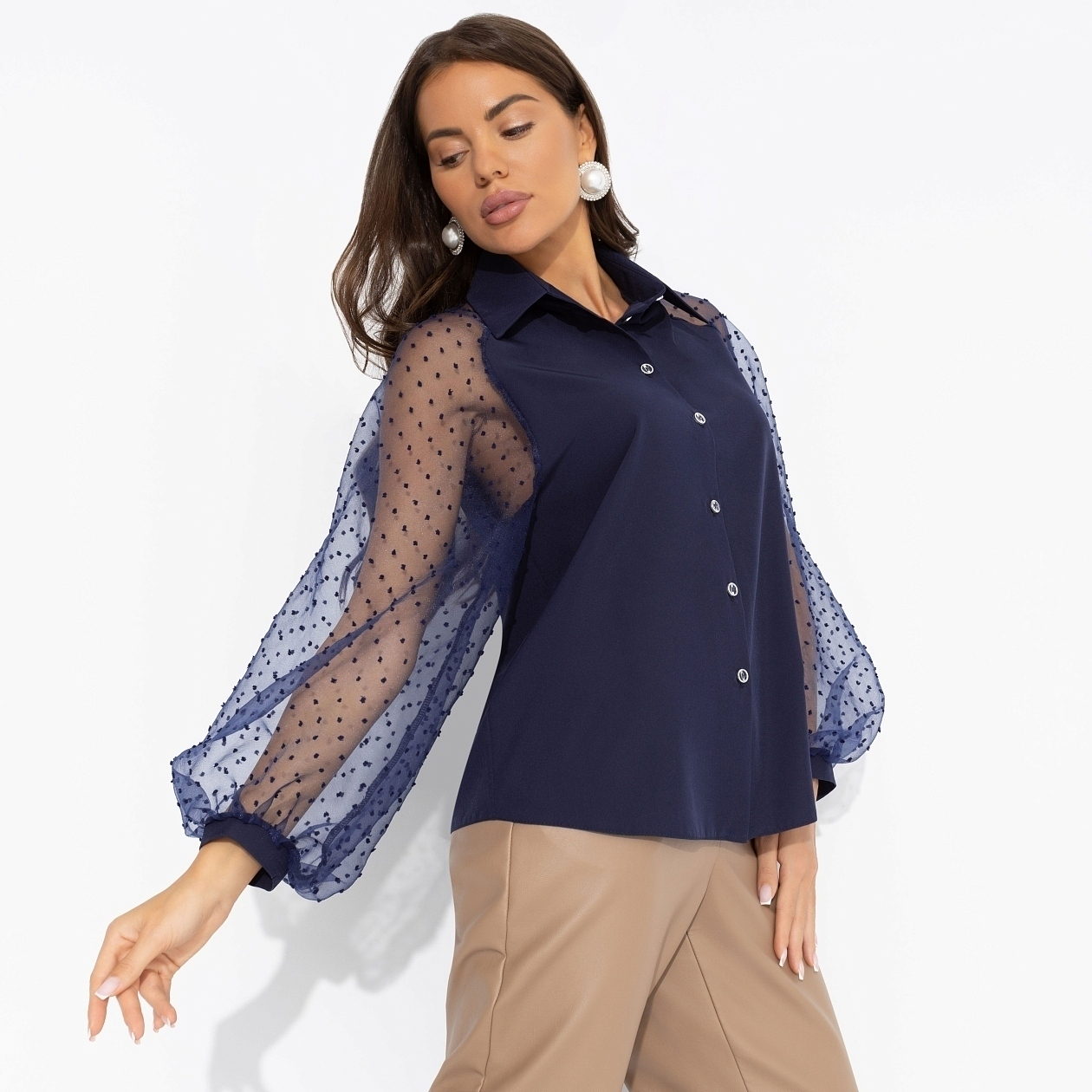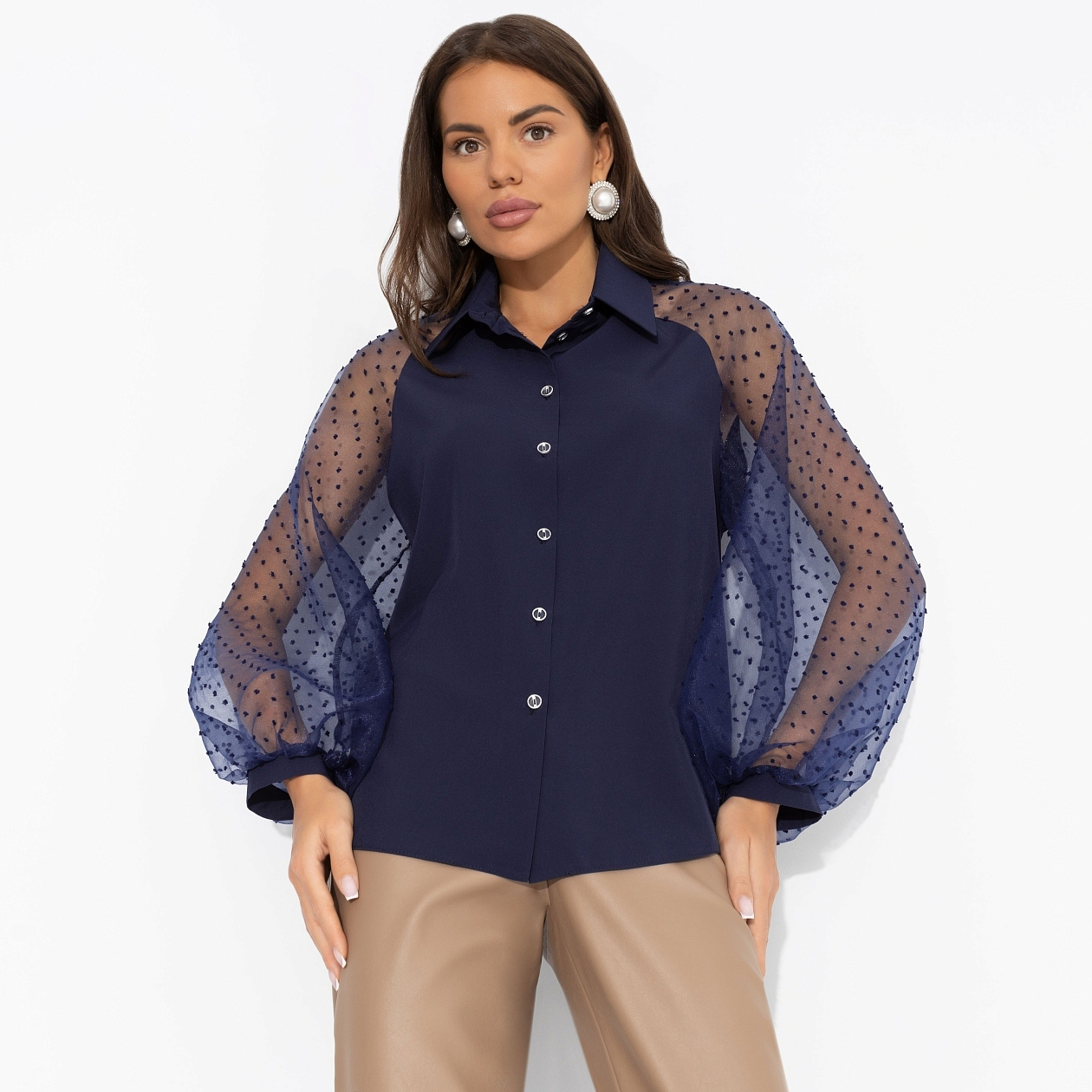 Блуза комбинированная с органзой, Теория красоты (синяя туманность)