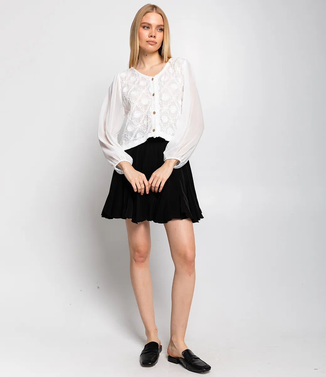 Эта Блуза — идеальный выбор для вашего магазина, предлагающий стильный и универсальный элемент гардероба для весеннего сезона. V-образный вырез на блузе, который визуально удлиняет шею и акцентирует внимание на декольте. Рукава слегка объемные, собранные на манжетах, что добавляет изящества и женственности. Свободный крой, который не сковывает движений и подходит для разных типов фигуры. Верхняя часть украшена тонким кружевом, создающим романтичный и элегантный образ. Ткань из 15% полиэстера и 85% хлопка является качественной и приятной на ощупь, а свободный крой обеспечивает комфорт при носке, позволяя чувствовать себя уверенно в течение всего дня. Эта Блуза станет универсальным элементом гардероба, который легко сочетать как с брюками для создания делового образа, так и с джинсами для более повседневного и расслабленного стиля. На странице сайта доступна таблица размеров, что поможет вашим покупателям быстро найти идеальный вариант. Предложенная цена делает ее доступной для широкой аудитории, что повышает интерес к этой модели. Рост модели 173, 84-58-89.
