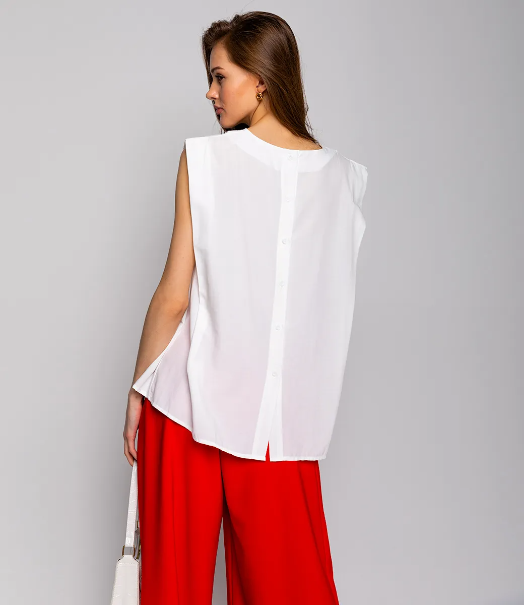 Женская рубашка - самая базовая вещь любой девушки! Модель, выполненная в стильном дизайне, прямого кроя уместна как для офисной работы, так и экстравагантного вечера. Универсальная повседневная рубашка без рукавов хорошо подходит к костюму, под пиджак.