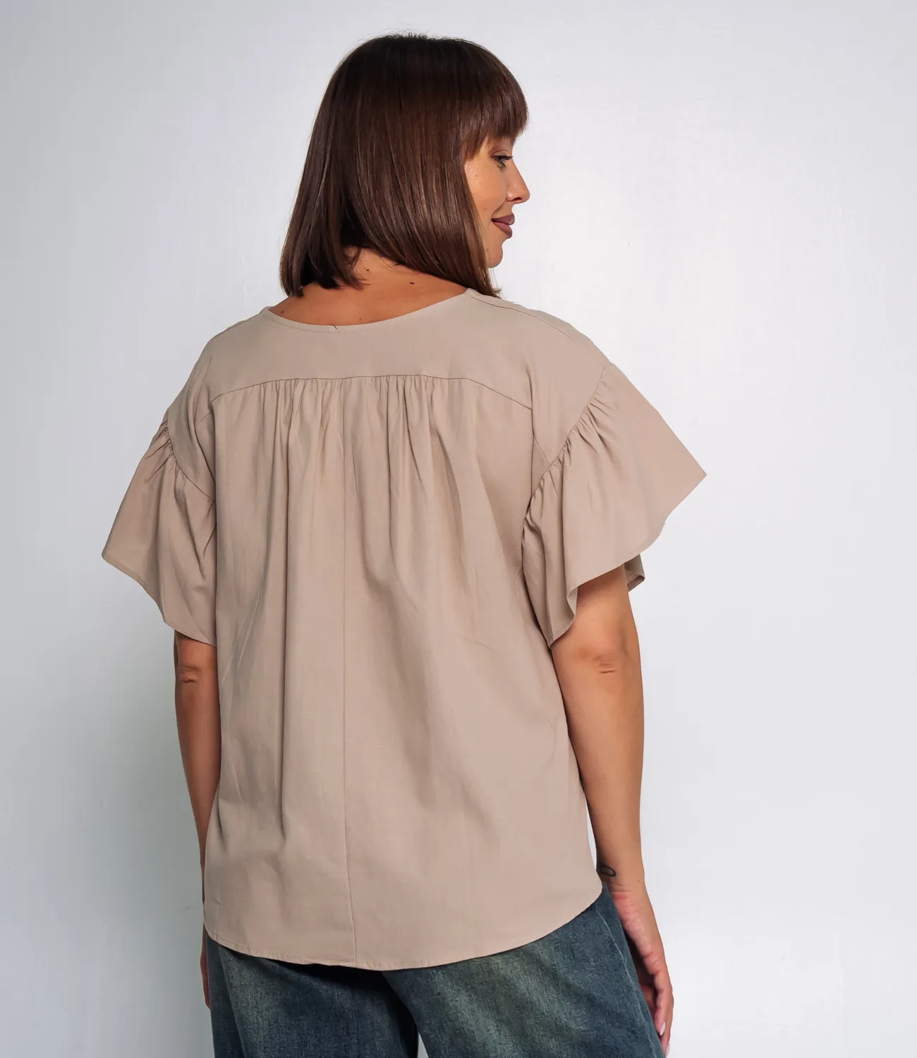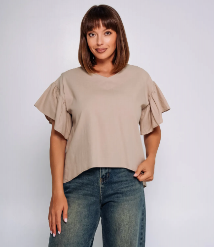 Элегантная женская блузка с оригинальным декором станет стильным дополнением повседневного и делового образа. Она декорирована рюшами на руковах. Легкая струящаяся ткань придает образу женственности и изысканности. Модель отлично сочетается с джинсами, юбкой любой длины, брюками. Рост 168 см, 89-63-90.