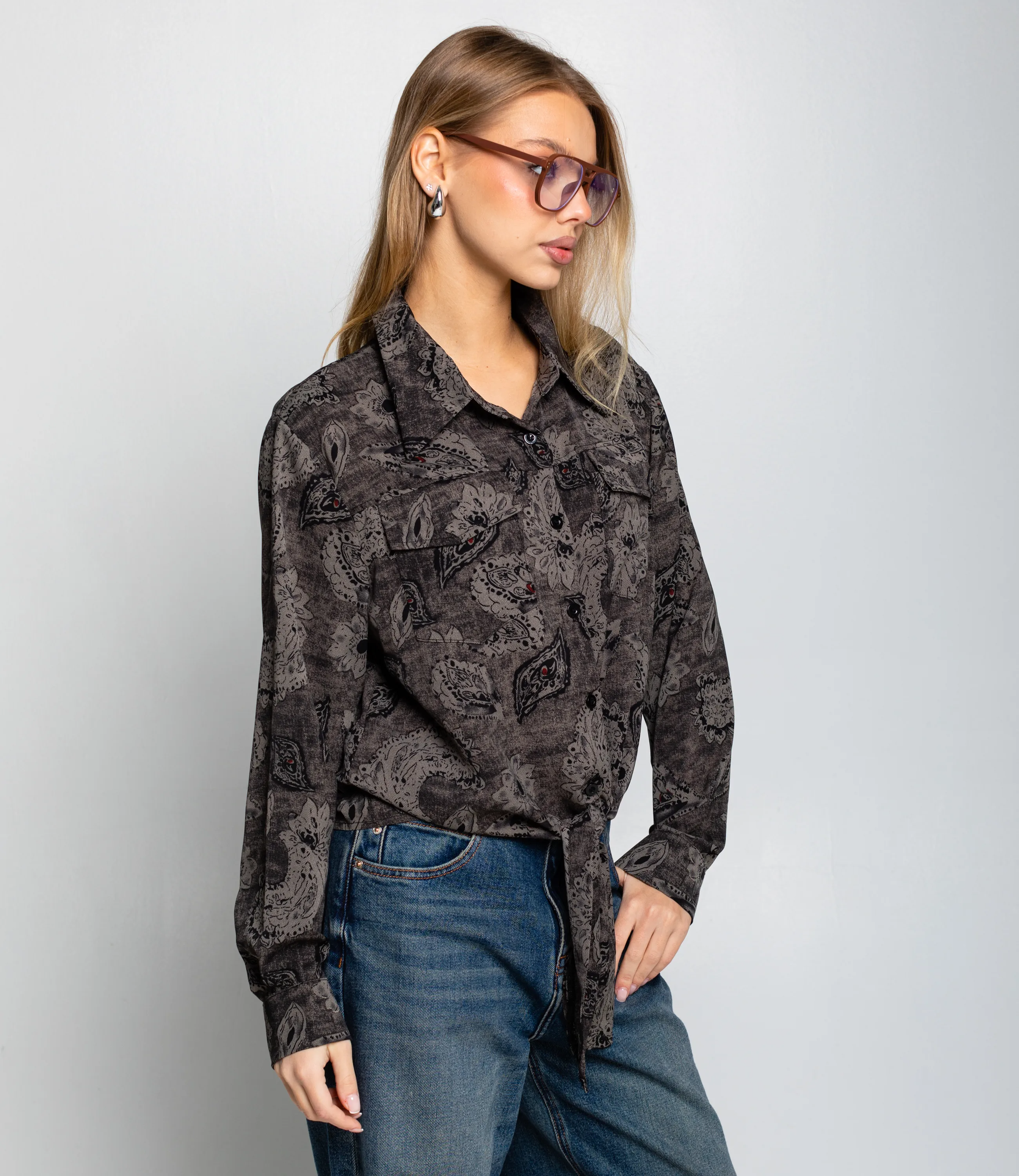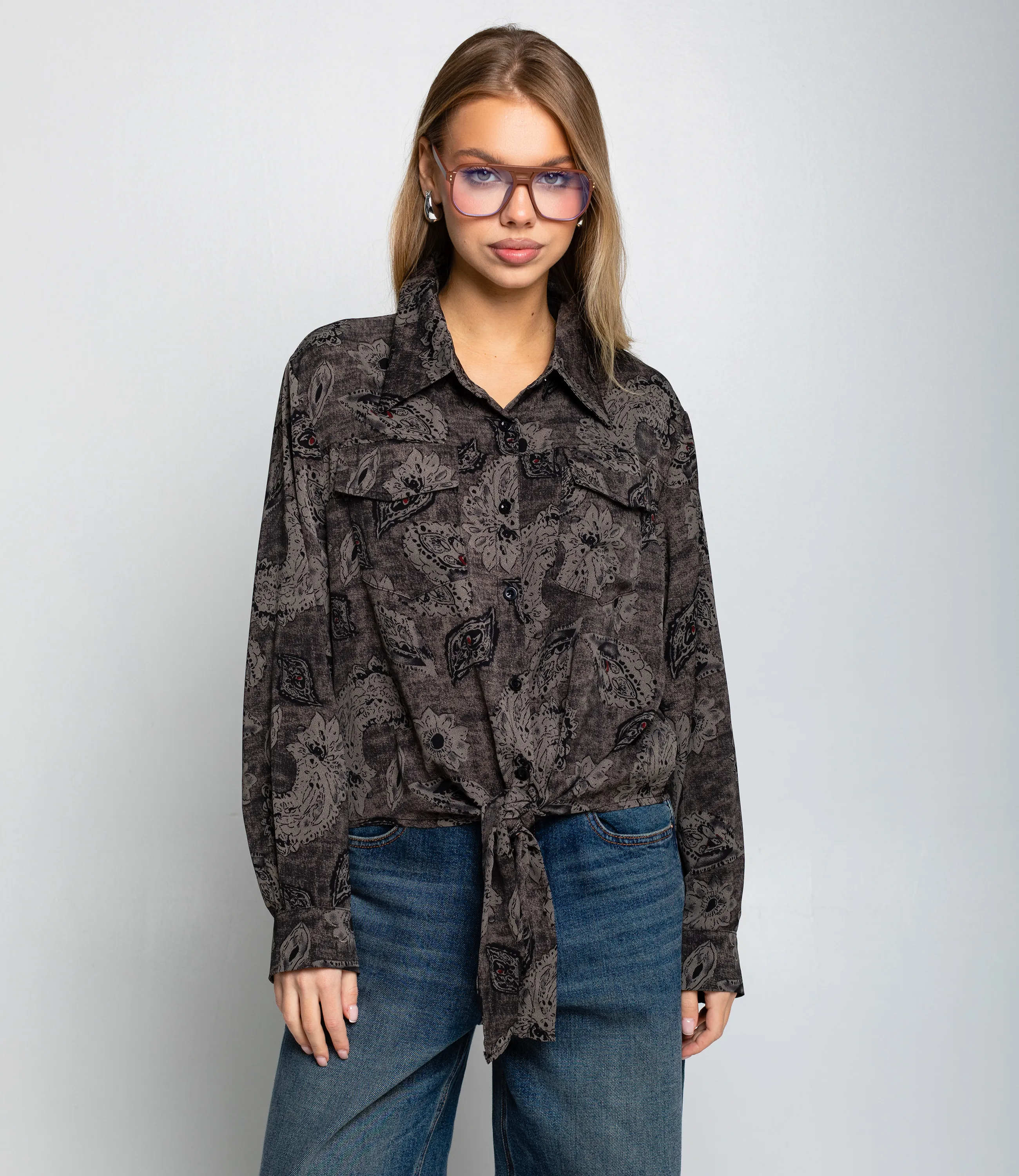 Блуза — это часть гардероба, которая подчёркивает женственность любой женщины. Блуза представляет собой сорочечный модель с классическим отложным воротником и планкой на пуговицах, до талии застёгивающуюся центральной застёжкой. Лёгкий свободный силуэт с мягко опущенной линией плеча и втачными длинными рукавами с манжетами на пуговицу, манжеты прямые, чуть удлинённые. На груди декоративные нагрудные клапаны в виде накладных карманов без видимой функциональной глубины. Передняя часть заканчивается удлинёнными лентами, завязываемыми в узел на уровне пояса, создающими эффект драпировки и подчёркивающими талию. Для пошива использована ткань: 100% полиэстер. Материал гладкий и слегка блестящий, хорошо тянется и сохраняет форму благодаря добавлению спандекса; полиэстер обеспечивает износостойкость и простоту ухода. Даже после многократных стирок блуза не утратит первоначальной аккуратности и презентабельного вида при соблюдении рекомендаций по уходу. Изделие выбирают покупательницы, которые ценят сочетание качества и разумной цены. Цвета глубокие и насыщенные, полностью соответствуют фотографиям на странице, что важно при комплектовании витрины. На странице представлена таблица размеров — с её помощью вы сможете самостоятельно снять мерки и подобрать нужные размеры для клиенток. Мы предлагаем выгодные оптовые условия, гибкую ценовую политику и надёжные поставки для ваших магазинов. Установленная нами цена адекватна и позволит вам формировать привлекательную наценку и обеспечивать высокую оборотность. Предложите своим покупательницам блузу, сочетающую в себе качество, комфорт и универсальную элегантность.
