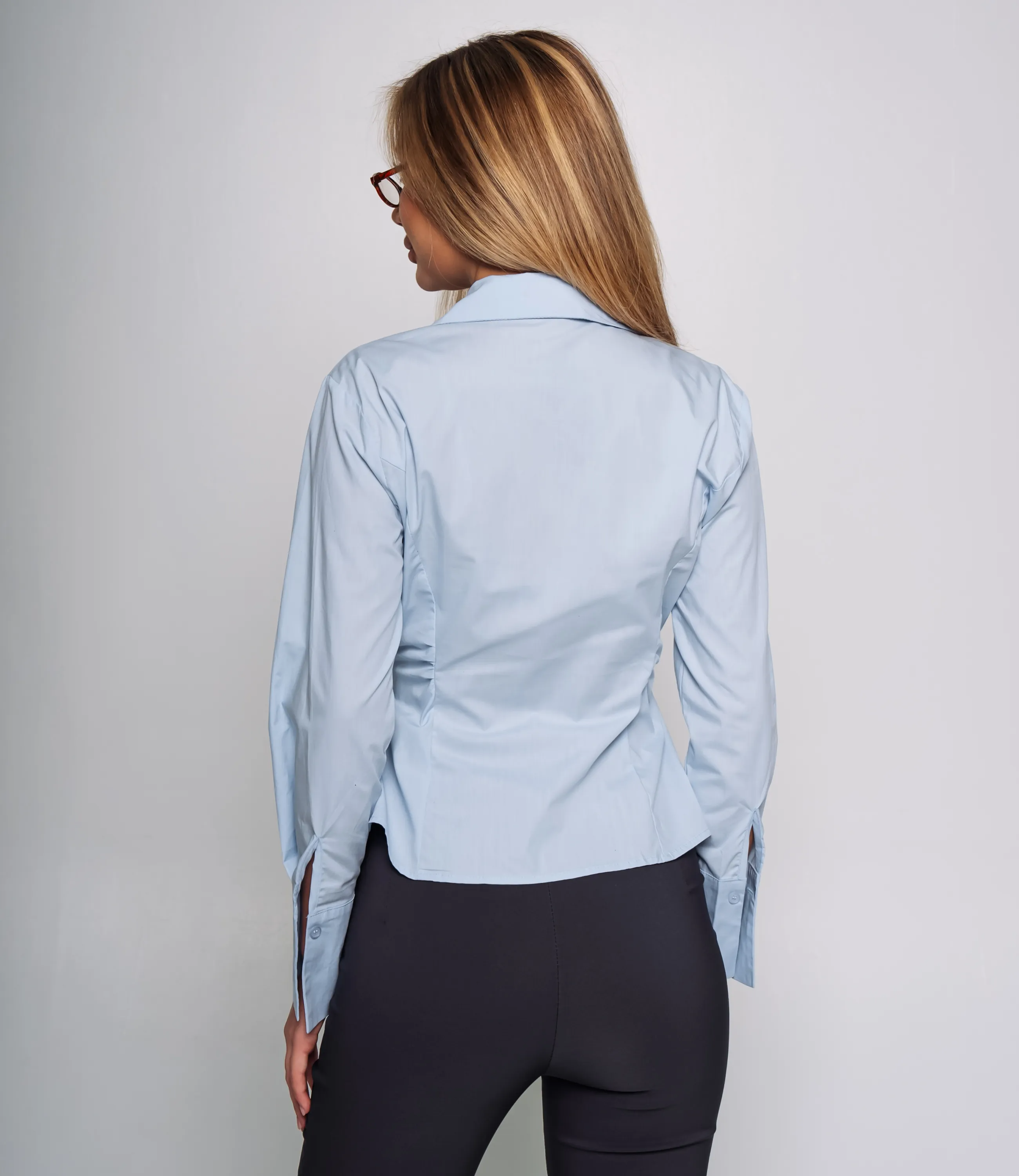 Блуза — это незаменимый элемент гардероба, который подчеркнет индивидуальность и стиль каждой женщины. Эта прекрасная модель, выполненная из 80% полиэстера и 20% хлопка, отличается легкостью, создавая воздушный и нежный образ. Блуза с запаховым V‑образным вырезом и отложным рубашечным воротником с мягкими лацканами имеет перекрещивающуюся переднюю деталь, формирующую узловую складку на уровне талии и создающую горизонтальные и косые драпировки; лиф выполнен с уменьшением объёма в талии за счёт встречных клиньев, что придаёт приталенность и подчёркивает силуэт. Не упустите возможность предложить своим клиентам эту удивительную блузу, которая добавит в их гардероб стиль и элегантность. Подарите вашим покупателям возможность чувствовать себя уверенно и привлекательно в любой обстановке!