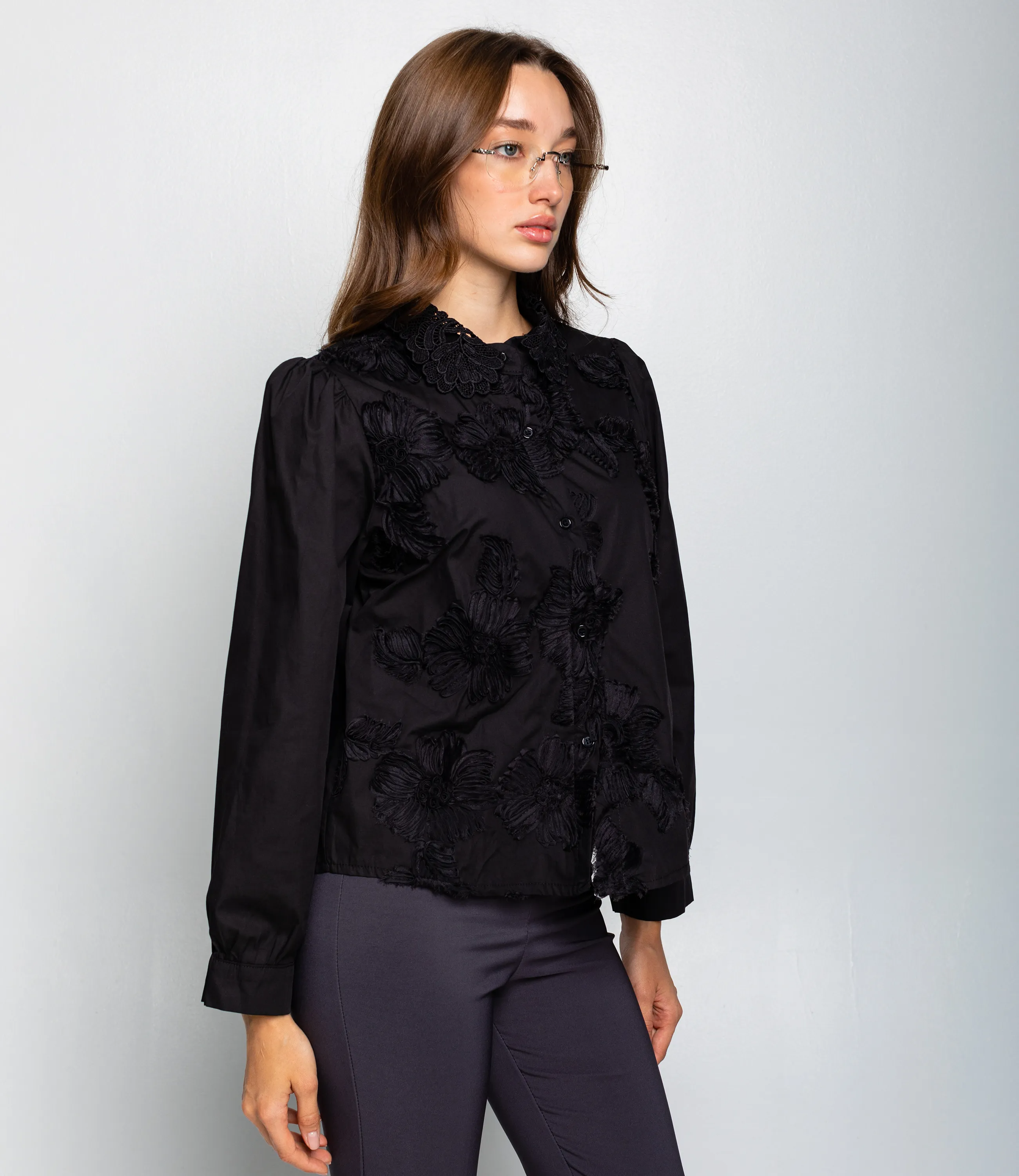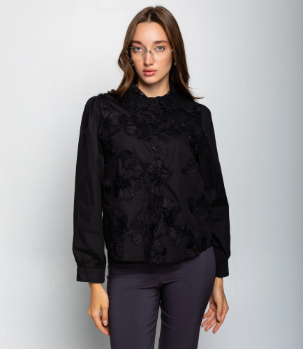 Блуза — это незаменимый элемент гардероба, который подчеркнет индивидуальность и стиль каждой женщины. Эта прекрасная модель, выполненная из 65% полиэстера и 35% хлопка, отличается легкостью, создавая воздушный и нежный образ. Приталенный, но не обтягивающий силуэт с лёгким расширением внизу. По лифу нанесены объёмные аппликации/вышивка в виде крупных цветочных мотивов. Длинные рукава с небольшим сбором в рукавной окате, переходящим в широкую манжету с застёжкой или аккуратной посадкой. Манжеты оформлены более сдержанно, без лишних украшений. Плечи аккуратно скроены, рукава средней полноты с лёгким объёмом в верхней части. Установленная цена является приемлемой и выгодной для оптовых покупателей, что делает вашу коллекцию еще более привлекательной. Не упустите возможность предложить своим клиентам эту удивительную блузу, которая добавит в их гардероб стиль и элегантность. Подарите вашим покупателям возможность чувствовать себя уверенно и привлекательно в любой обстановке! Рост модели: 168, параметры: 85-63-92.