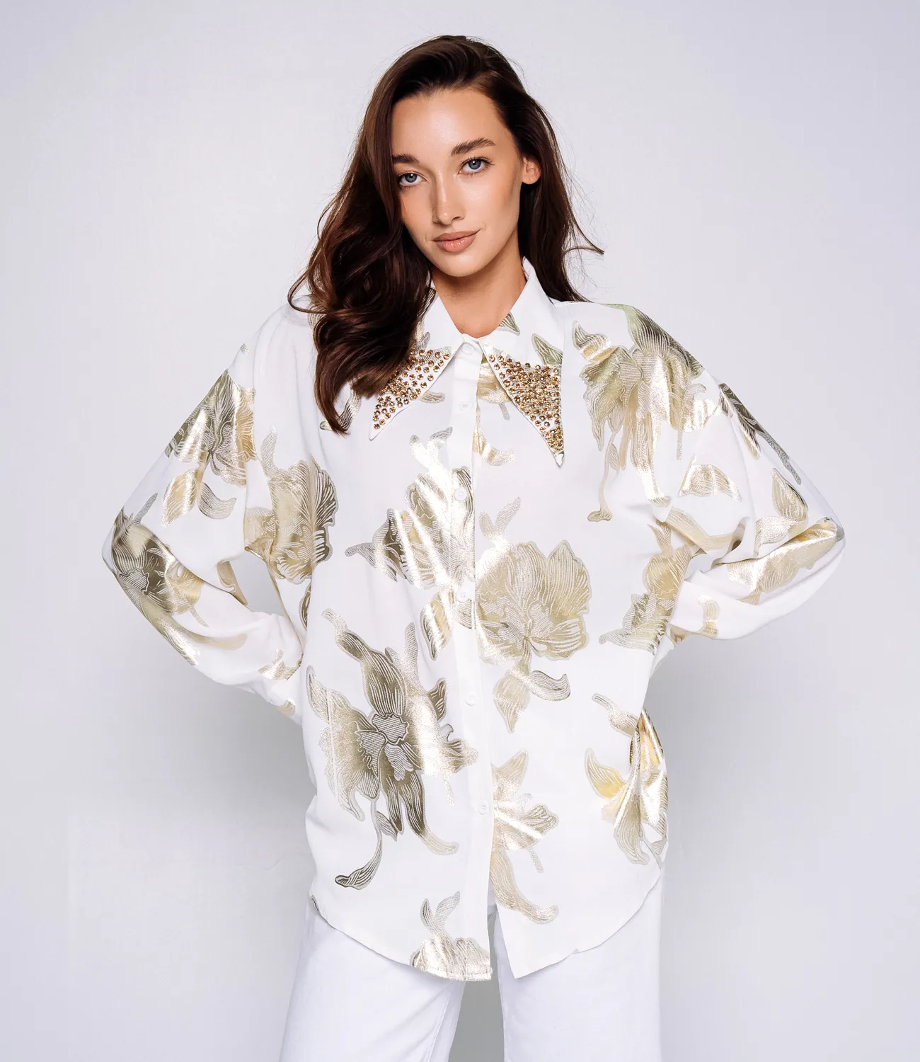 Блуза – это вещь, которая подчеркивает женственность и уникальность каждой представительницы прекрасного пола. Данная модель – яркая блуза с цветочным принтом, которая отлично подойдет для демисезонного периода. Ее предпочитают покупательницы, которые ценят сочетание качества и стильного дизайна. Фасон подчеркивает привлекательность фигуры. Компания знает, как разработать модные и эффектные решения. Для пошива использована ткань 100% полиэстр, которая характеризуется отменным качеством. Даже после множества стирок блуза не утратит первоначальной привлекательности. Вы будете носить ее с радостью. Обратите внимание на яркий цветочный принт и стразы на воротнике, которые добавляют изюминку и полностью соответствуют фотографии на сайте. Чтобы вы были уверены в размере, мы представили на странице таблицу. Воспользовавшись ею, вы сможете самостоятельно обмерить себя и удостовериться. Установленная нами цена является приемлемой. Подарите себе удовольствие выглядеть стильно и элегантно! Рост модели 168 см., 85-63-92.