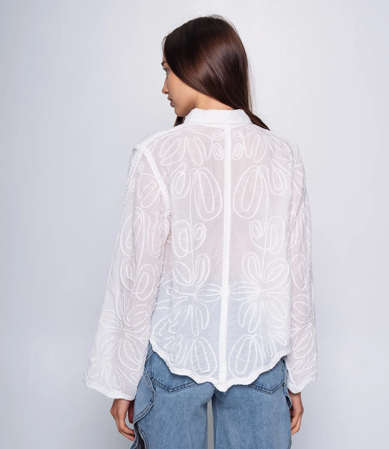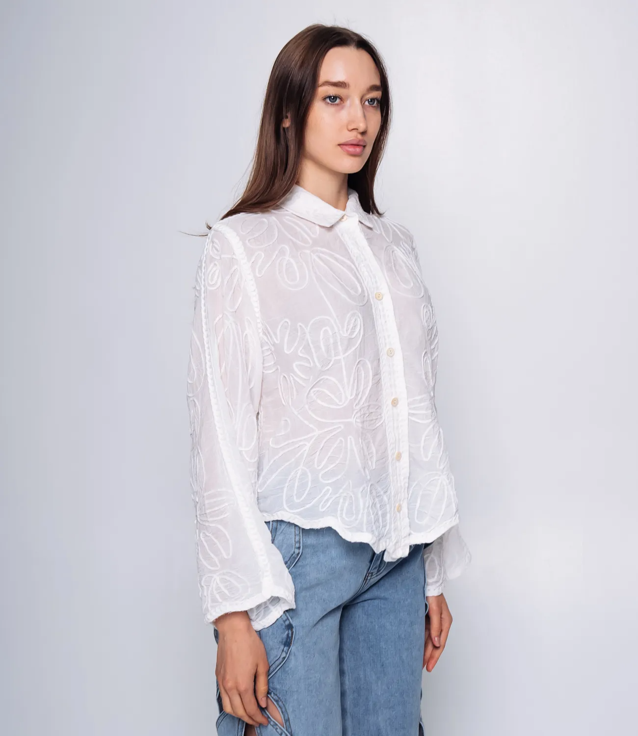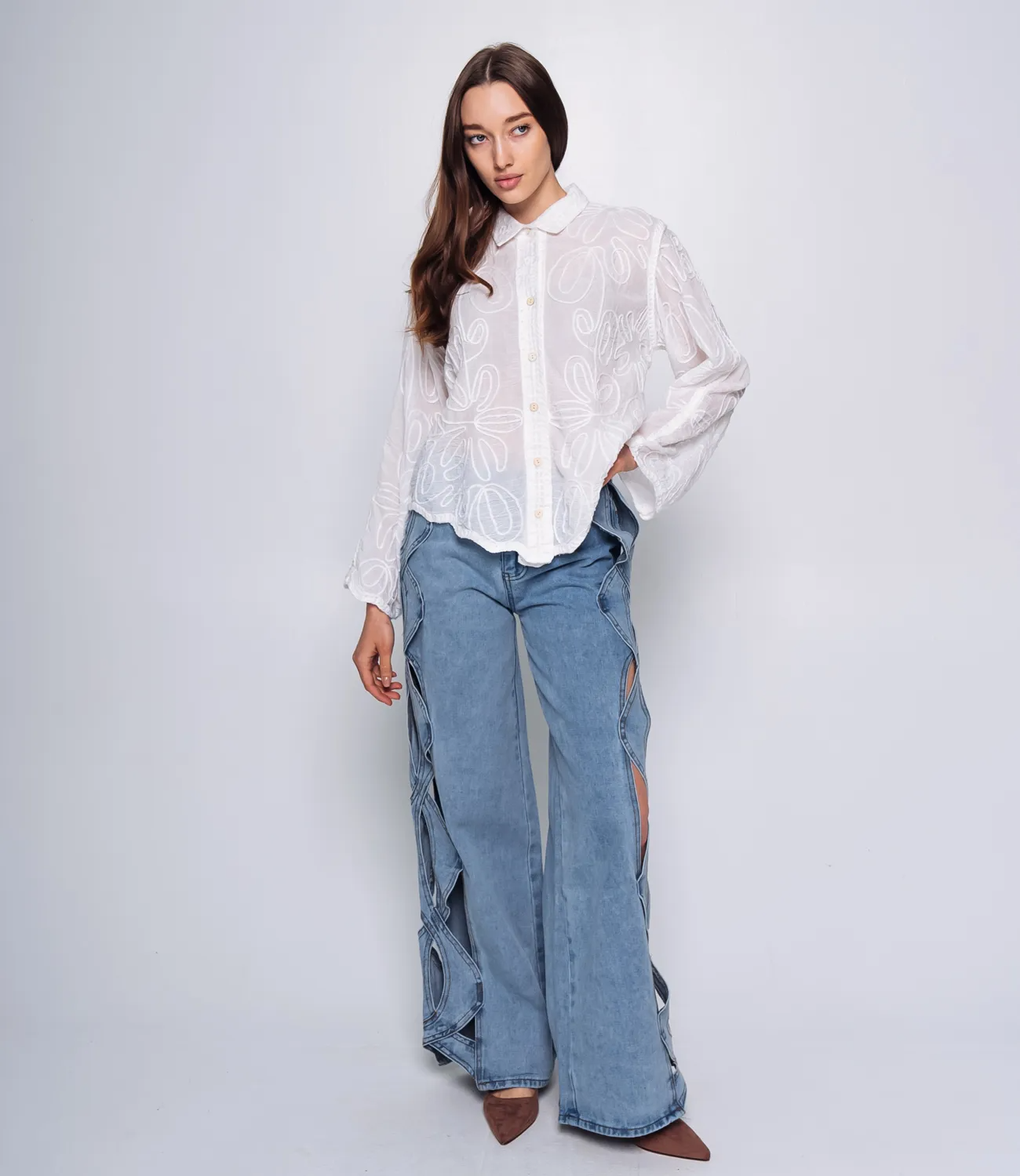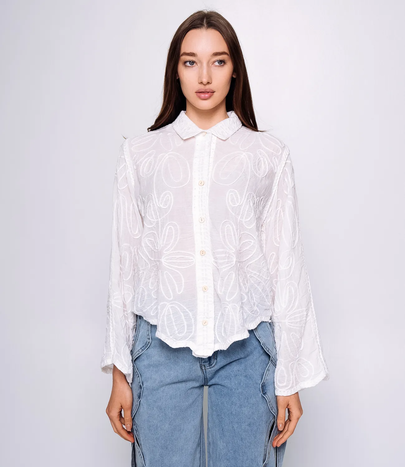 Эта Блуза — идеальный выбор для вашего магазина, предлагающий стильный и универсальный элемент гардероба для весеннего сезона. Блуза украшена вышивками в виде цветочных узоров, что придаёт ей романтичный и элегантный вид. Классический отложной воротник для создания строгого и одновременно романтичного образа. Длинные рукава с манжетами, которые можно подкатить для создания более расслабленного образа, делают блузу максимально комфортной и стильной. Ткань из 100% хлопка является качественной и приятной на ощупь, а свободный крой обеспечивает комфорт при носке, позволяя чувствовать себя уверенно в течение всего дня. Эта Блуза станет универсальным элементом гардероба, который легко сочетать как с брюками для создания делового образа, так и с джинсами для более повседневного и расслабленного стиля. На странице сайта доступна таблица размеров, что поможет вашим покупателям быстро найти идеальный вариант. Предложенная цена делает ее доступной для широкой аудитории, что повышает интерес к этой модели. Рост модели: 168, параметры: 85-63-92.