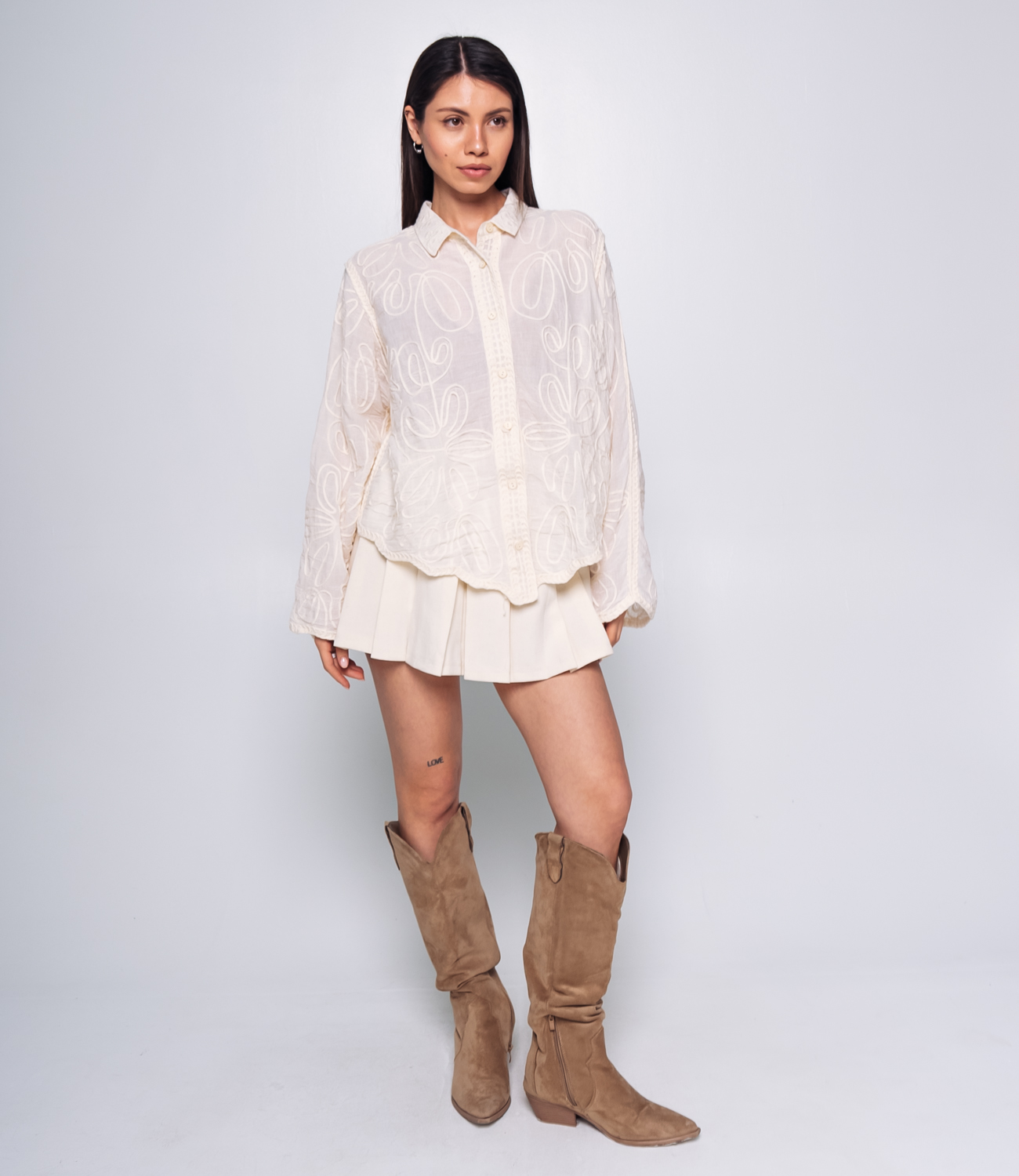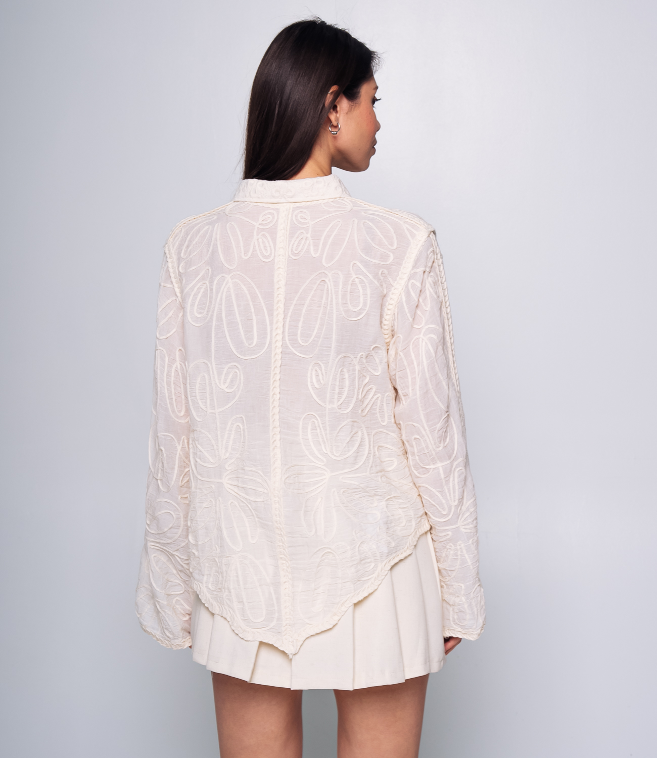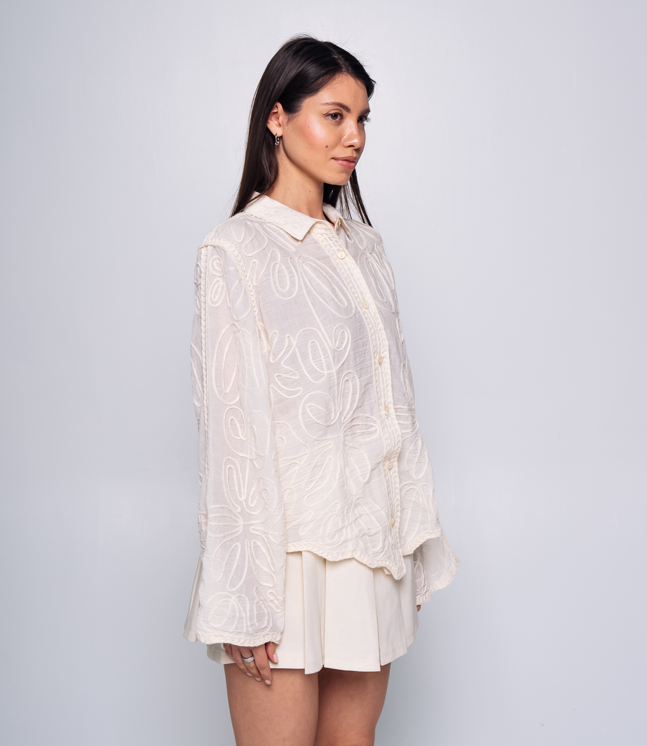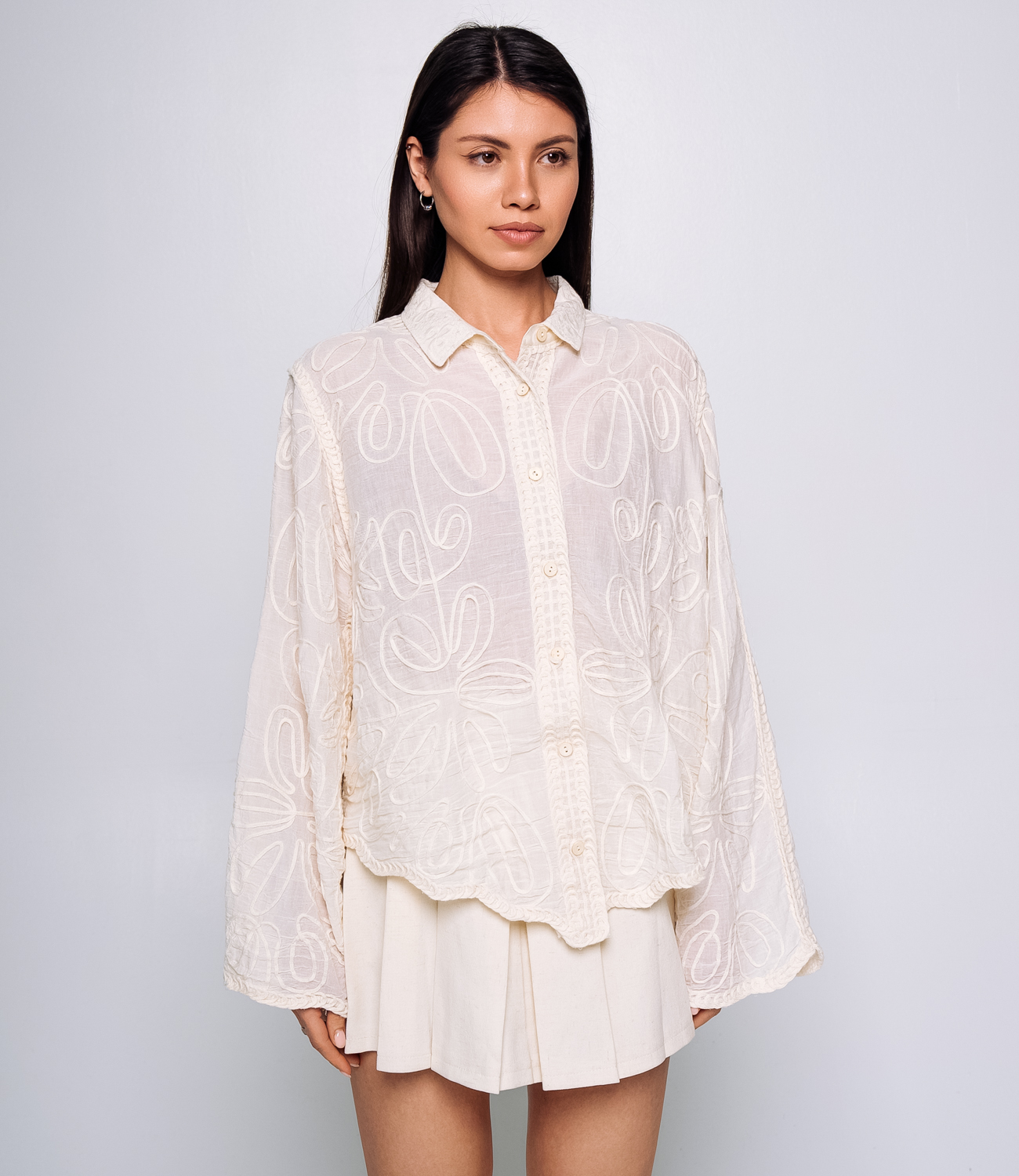 Эта Блуза — идеальный выбор для вашего магазина, предлагающий стильный и универсальный элемент гардероба для весеннего сезона. Блуза украшена вышивками в виде цветочных узоров, что придаёт ей романтичный и элегантный вид. Классический отложной воротник для создания строгого и одновременно романтичного образа. Длинные рукава с манжетами, которые можно подкатить для создания более расслабленного образа, делают блузу максимально комфортной и стильной. Ткань из 100% хлопка является качественной и приятной на ощупь, а свободный крой обеспечивает комфорт при носке, позволяя чувствовать себя уверенно в течение всего дня. Эта Блуза станет универсальным элементом гардероба, который легко сочетать как с брюками для создания делового образа, так и с джинсами для более повседневного и расслабленного стиля. На странице сайта доступна таблица размеров, что поможет вашим покупателям быстро найти идеальный вариант. Предложенная цена делает ее доступной для широкой аудитории, что повышает интерес к этой модели. Рост модели: 164, параметры: 83-61-89.