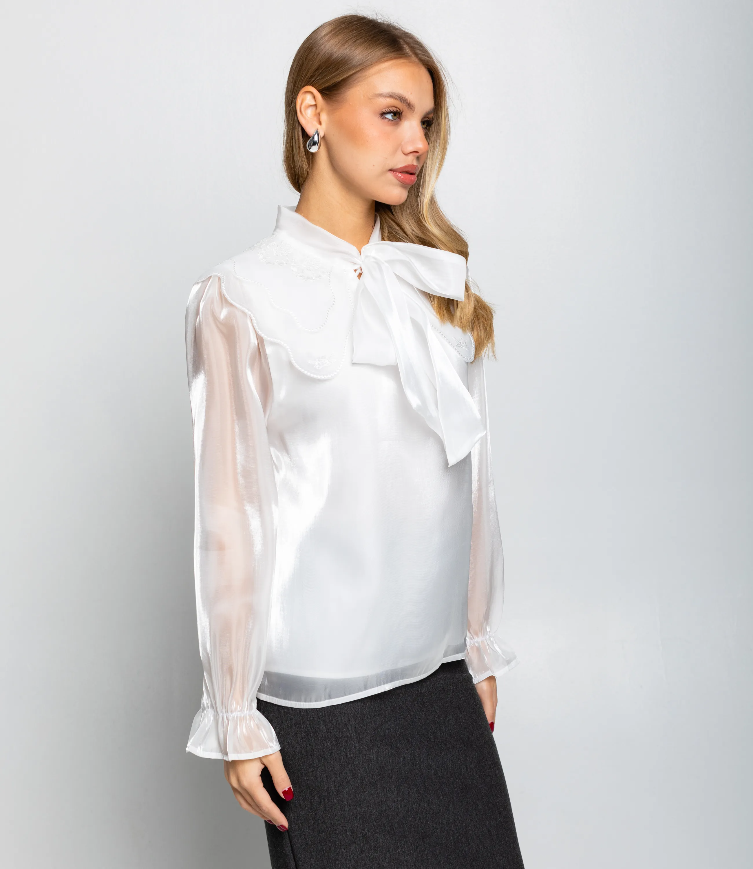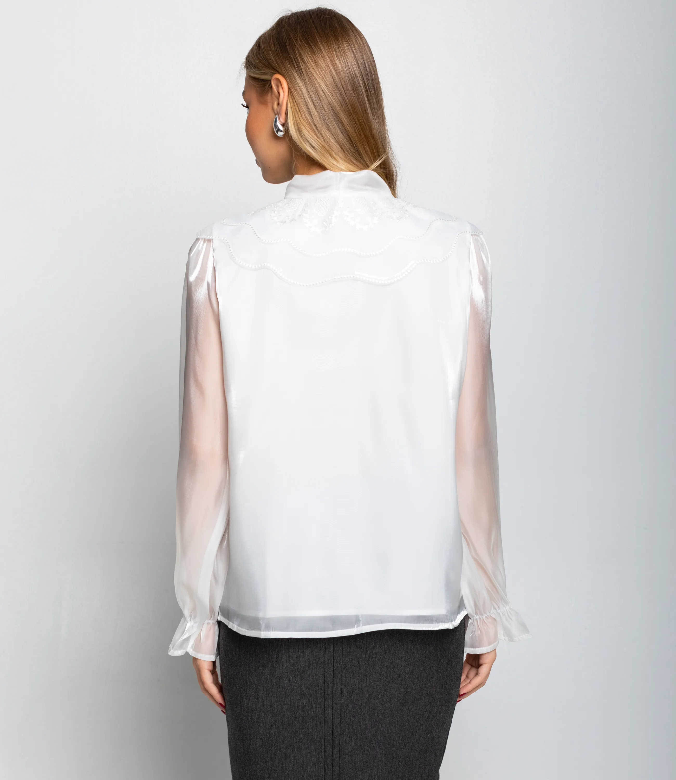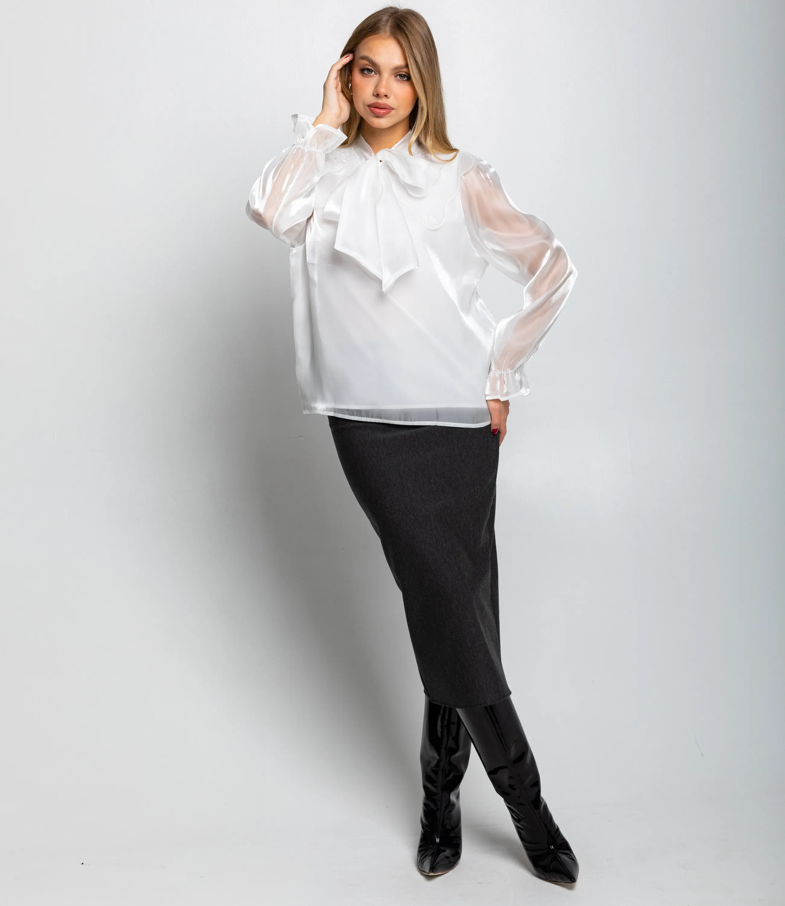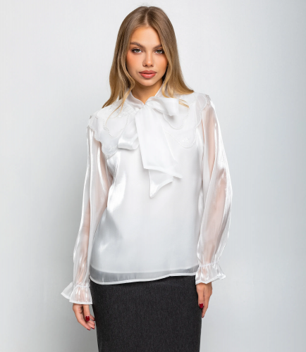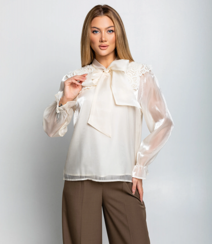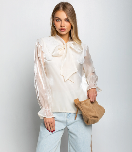 Эта Блуза — идеальный выбор для вашего магазина, предлагающий стильный и универсальный элемент гардероба для весеннего сезона. Лёгкая блуза прямого силуэта длиной до бёдер выполнена из тонкой полупрозрачной ткани с мягким блеском и плавным драпированием; широкий плоский воротник с волнообразным краем плавно переходит в длинные завязывающиеся ленты, образующие бантик на шее; длинные рукава имеют небольшой объём в верхней части и заканчиваются узкими присборенными манжетами с тонкой оборкой; воротник украшен деликатной отделочной строчкой или вышивкой вдоль края. Ткань из 100% хлопка является качественной и приятной на ощупь, а свободный крой обеспечивает комфорт при носке, позволяя чувствовать себя уверенно в течение всего дня. Эта Блуза станет универсальным элементом гардероба, который легко сочетать как с брюками для создания делового образа, так и с джинсами для более повседневного и расслабленного стиля. На странице сайта доступна таблица размеров, что поможет вашим покупателям быстро найти идеальный вариант. Предложенная цена делает ее доступной для широкой аудитории, что повышает интерес к этой модели. Рост 168, 89-63-90.