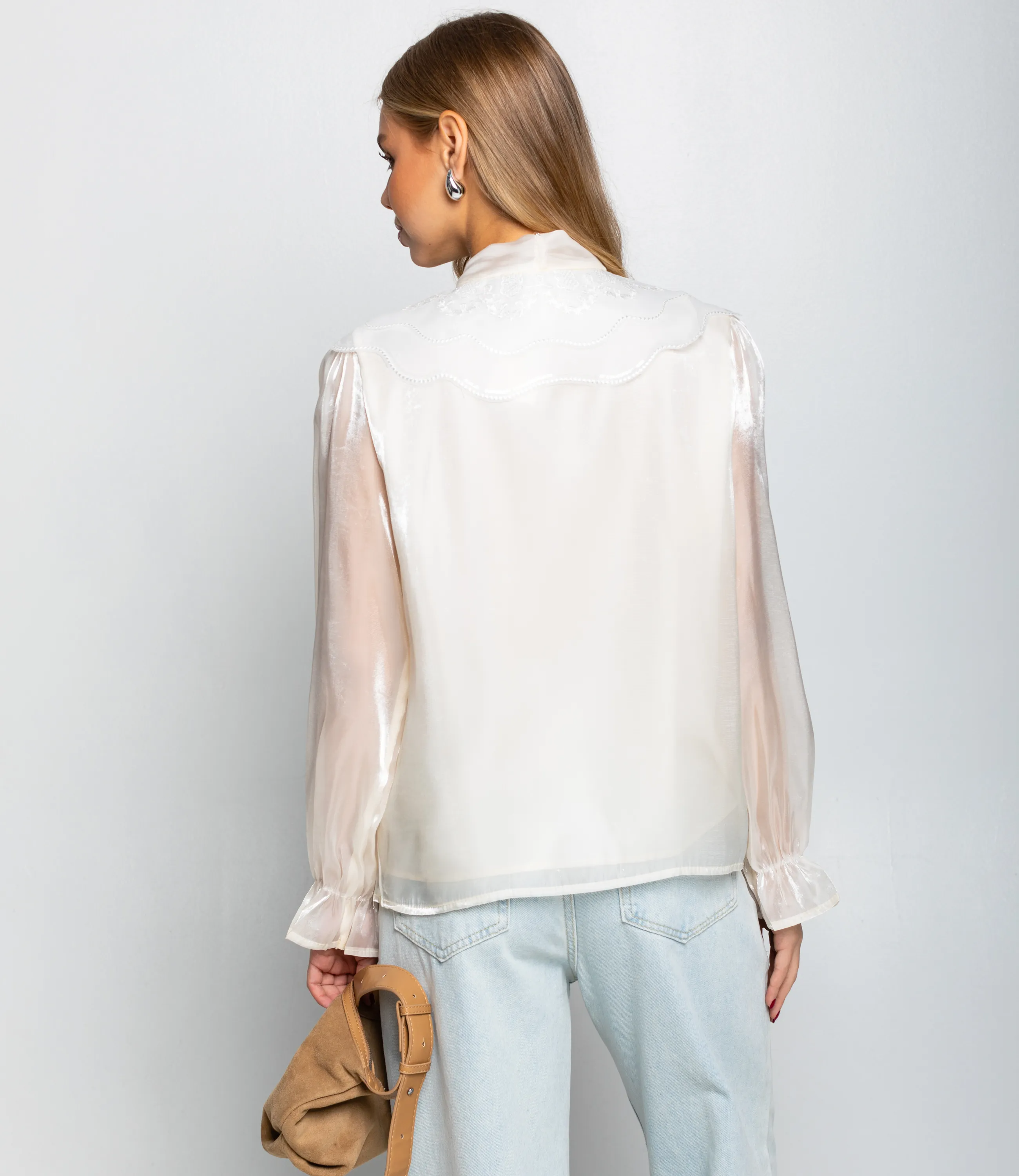Эта Блуза — идеальный выбор для вашего магазина, предлагающий стильный и универсальный элемент гардероба для весеннего сезона. Лёгкая блуза прямого силуэта длиной до бёдер выполнена из тонкой полупрозрачной ткани с мягким блеском и плавным драпированием; широкий плоский воротник с волнообразным краем плавно переходит в длинные завязывающиеся ленты, образующие бантик на шее; длинные рукава имеют небольшой объём в верхней части и заканчиваются узкими присборенными манжетами с тонкой оборкой; воротник украшен деликатной отделочной строчкой или вышивкой вдоль края. Ткань из 100% хлопка является качественной и приятной на ощупь, а свободный крой обеспечивает комфорт при носке, позволяя чувствовать себя уверенно в течение всего дня. Эта Блуза станет универсальным элементом гардероба, который легко сочетать как с брюками для создания делового образа, так и с джинсами для более повседневного и расслабленного стиля. На странице сайта доступна таблица размеров, что поможет вашим покупателям быстро найти идеальный вариант. Предложенная цена делает ее доступной для широкой аудитории, что повышает интерес к этой модели. Рост 168, 89-63-90.