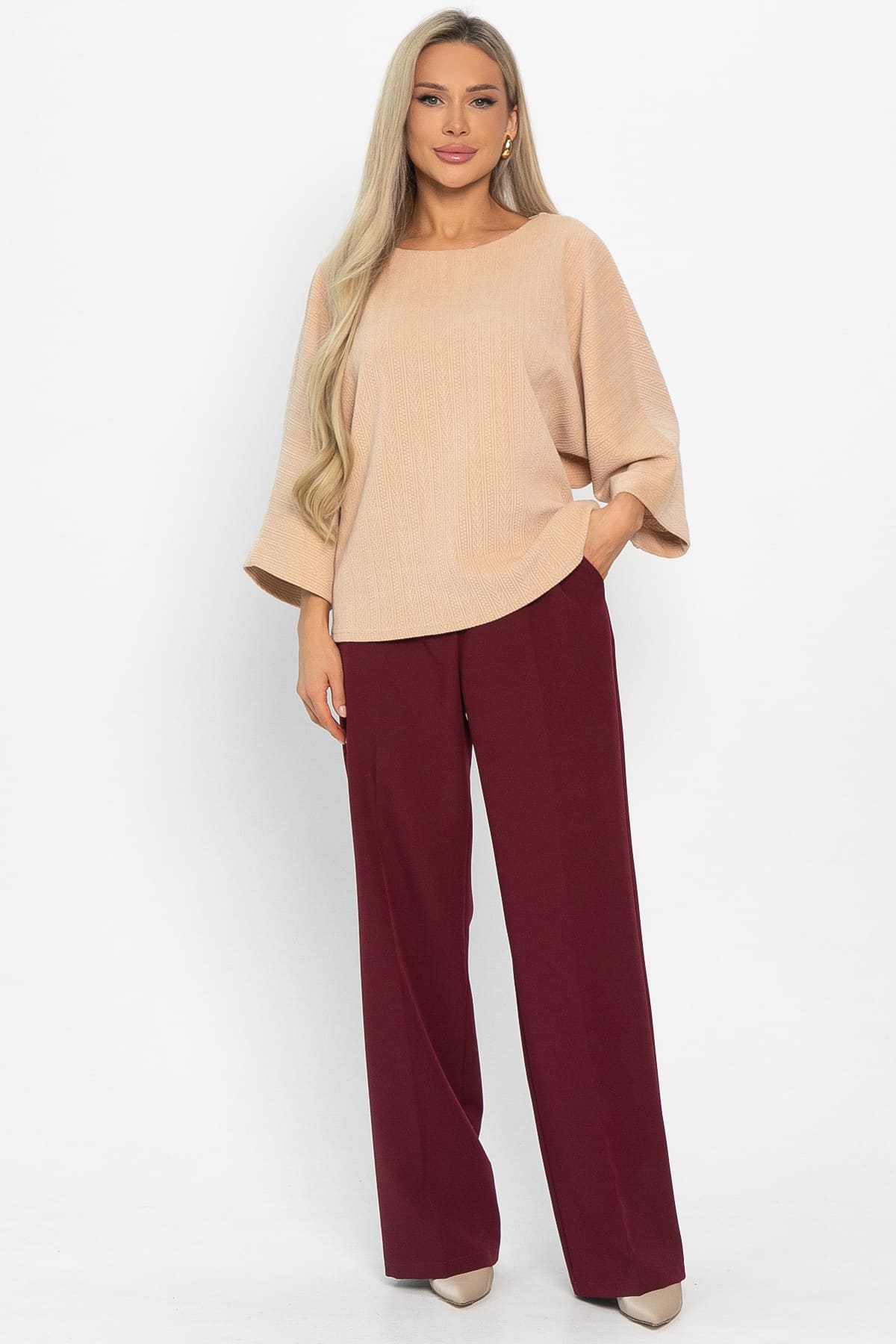 Ваше идеальное решение для воплощения стильных, удобных и повседневных образов! Эта вещь станет незаменимой благодаря своей универсальности и возможности создавать комфортные и модные ансамбли. Округлый вырез горловины — это классика, подходящая для всех, которая выгодно подчеркивает изящество шеи. Особое внимание заслуживают рукава, выполненные в стиле «летучая мышь». Такая модная интерпретация не только придает блузе современный вид, но и обеспечивает невероятную свободу движений.