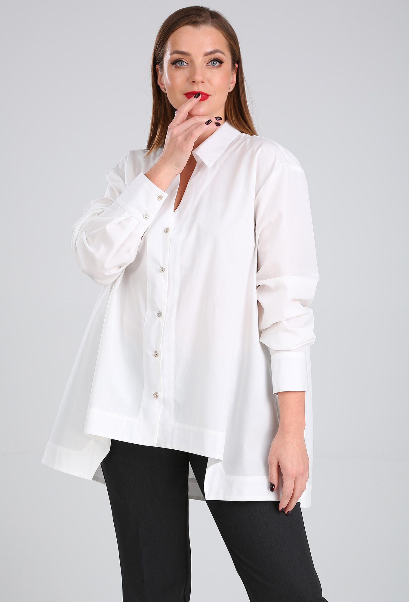 Модель: Леди Лайн 504 молочный Ро..показатьст: 164 см (девушка на фото ростом 170см) Сезон: Круглогодичный Тип ткани: 49% хлопок 48% вискоза 3% спандексБлузка из натуральных тканей свободного силуэта, расширенная к низу._x000D_
