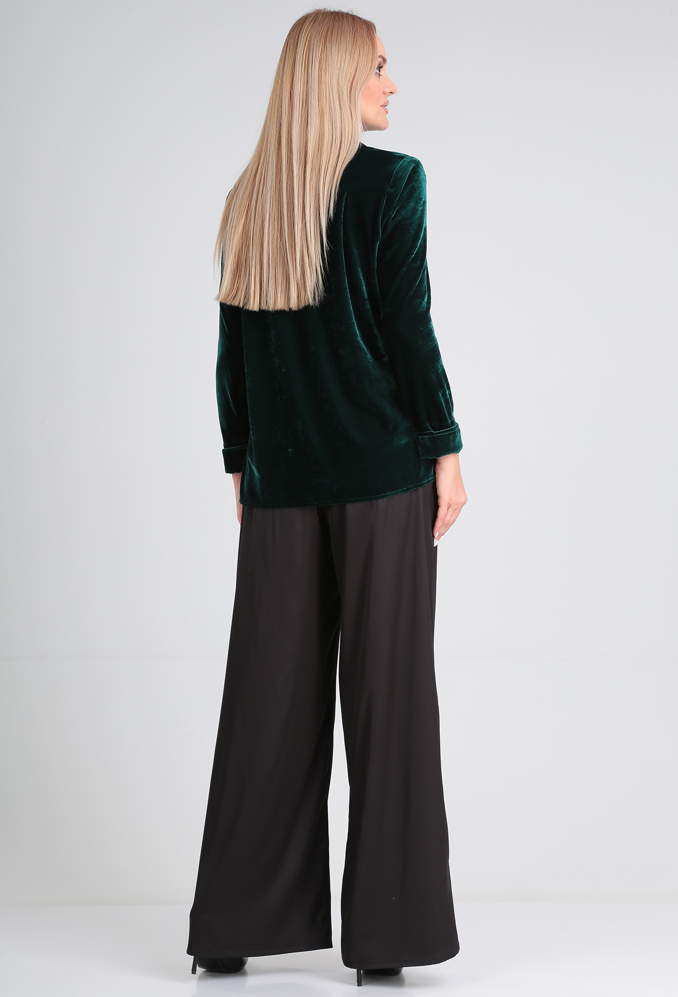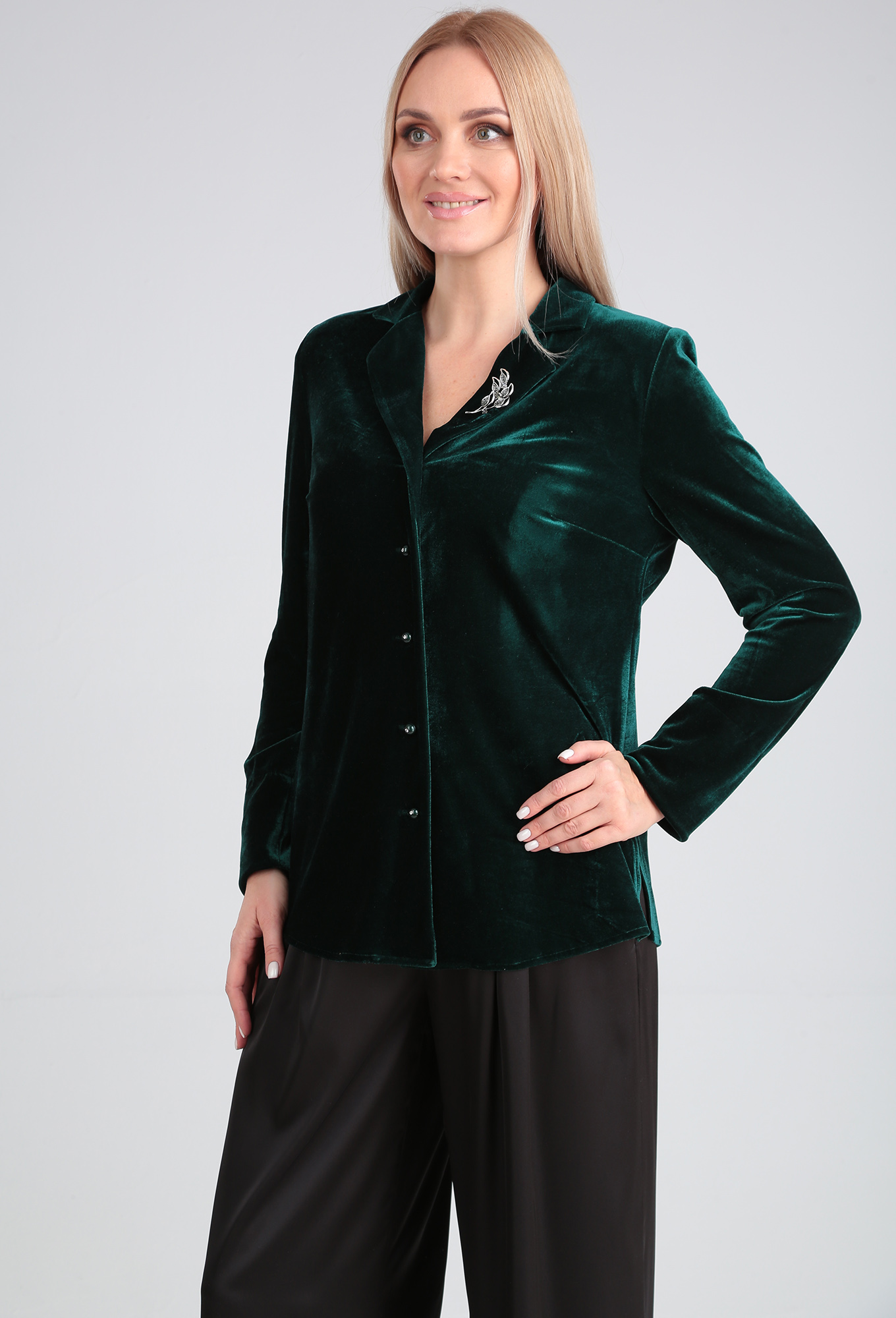 Модель: Леди Лайн 517/1БЛ изумруд ..показать>Рост: 164 см (девушка на фото ростом 170см) Сезон: Круглогодичный Тип ткани: Полиэфир 49%, вискоза 48%, спандекс 3%Бархатной блузки со стрейчем свободного силуэта, по спинке отрезная кокетка и заложены две не больших складки под кокеткой. Воротник стояче-отложной, лацканы отложные. Вырез V- образный. Центральная застёжка на петли и пуговицы. На лацкан прикреплена брошь. Рукав без манжета с обтачкой для отворота.