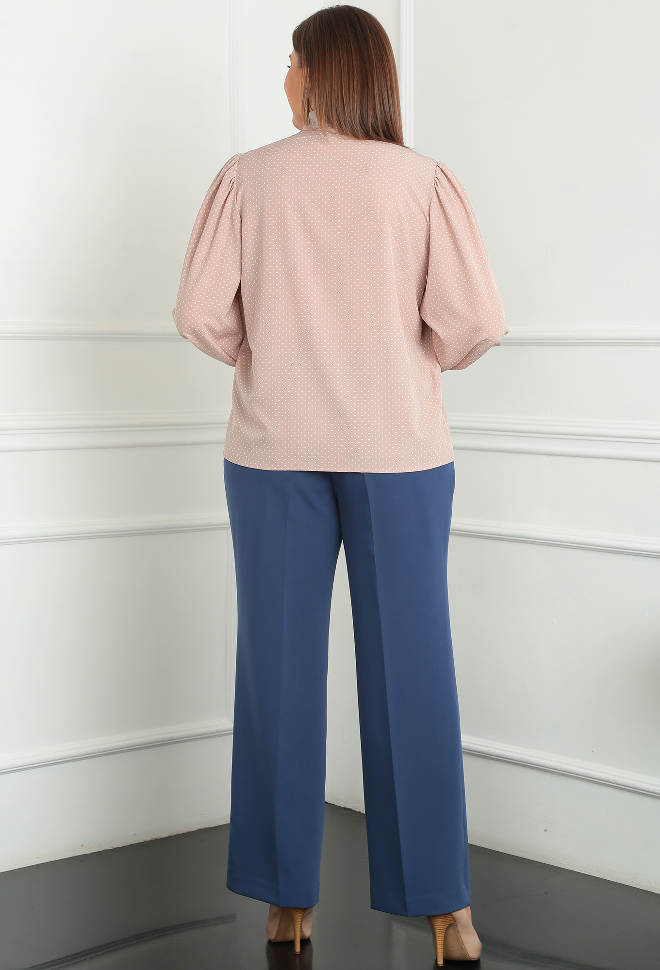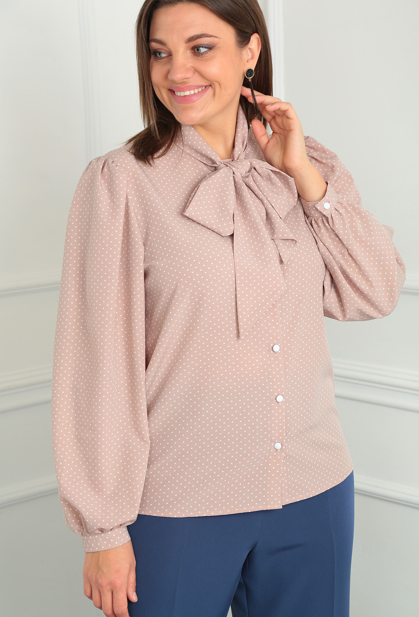 Модель: Леди Лайн 524 бежевый горох <..показатьli>Рост: 164 см (девушка на фото ростом 170см) Сезон: Круглогодичный Тип ткани: Полиэфир 49 %, Вискоза 48%, Спандекс - 3%Блузка свободного прямого силуэта. По переду застёжка на петли и пуговицы. Воротник оложной с завязками в бант Рукав свободный. По окату и низу на сборкек. По низу рукава пришит манжет и застёгивается манжет на одну петлю и пуговицу.