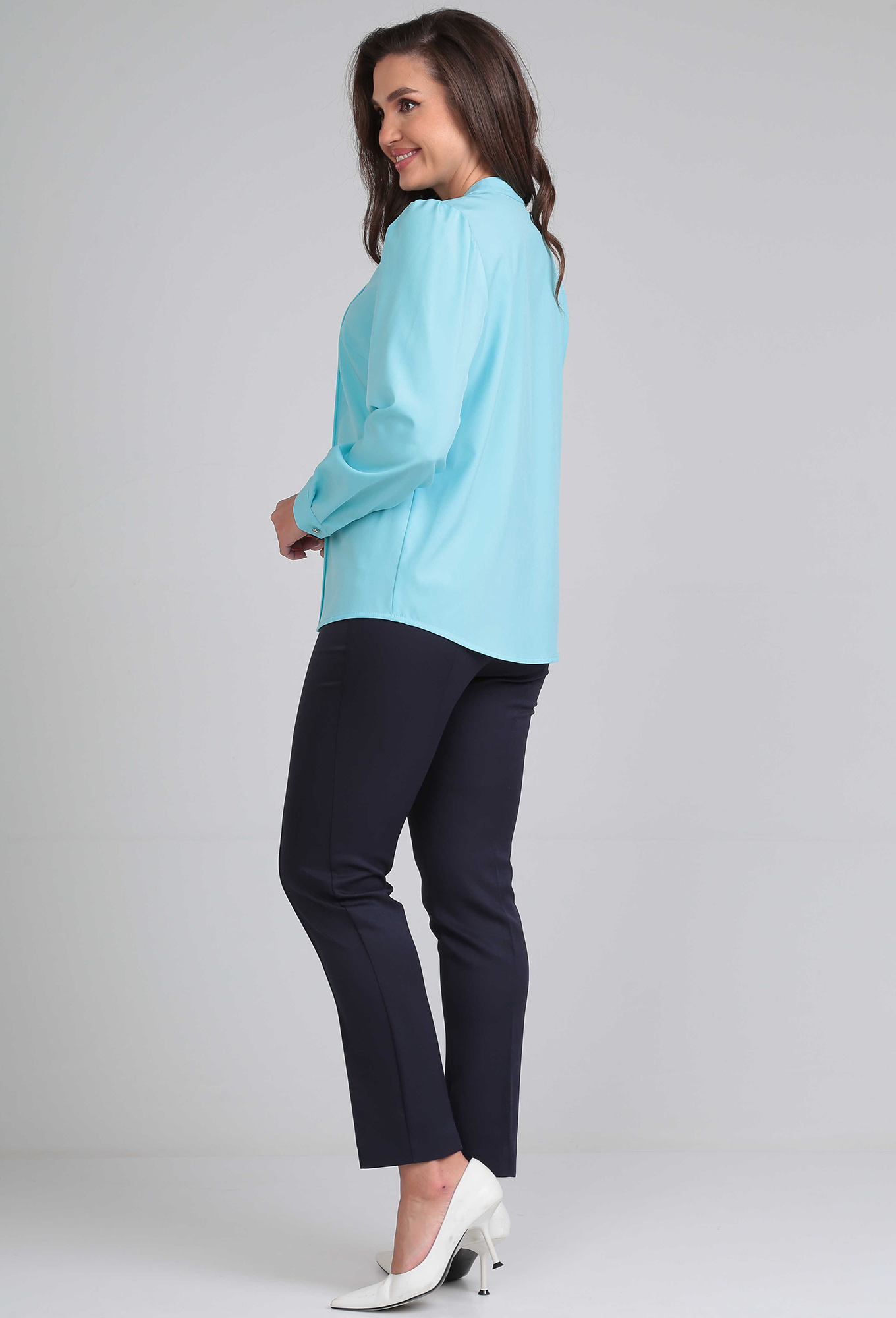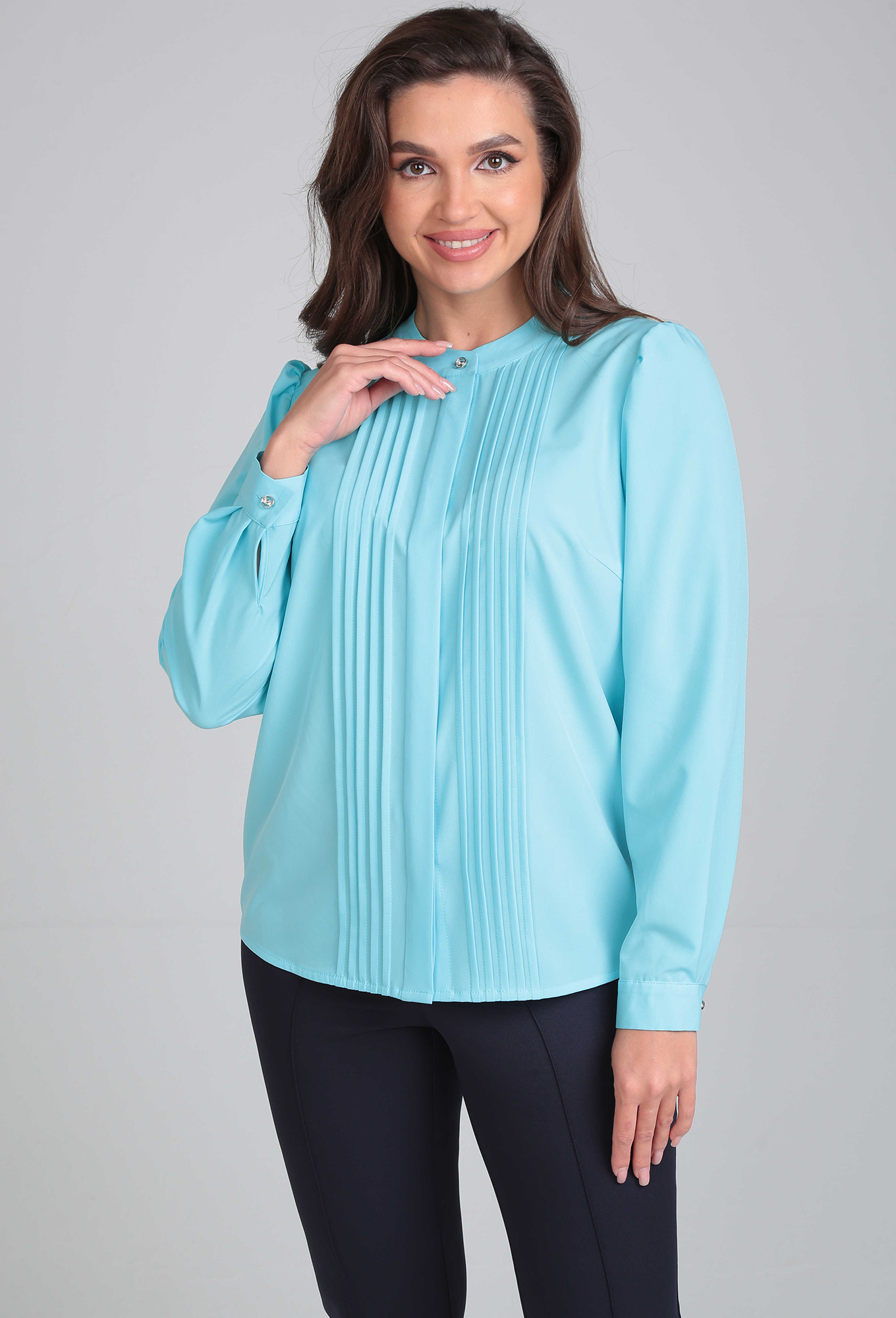 Модель: Леди Лайн 549 голубой Рос..показатьт: 164 см (девушка на фото ростом 170см) Сезон: Круглогодичный Тип ткани: 49% полиэфир, 48% вискоза, 3%спандексБлузка элегантная прямого силуэта, из приятной к телу ткани софт, дышащая._x000D_