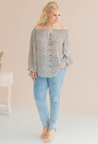 край и присобран на резинку"венгерку". Рукав однослойный. Низ блузки прямой.