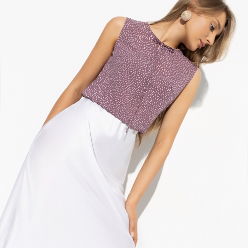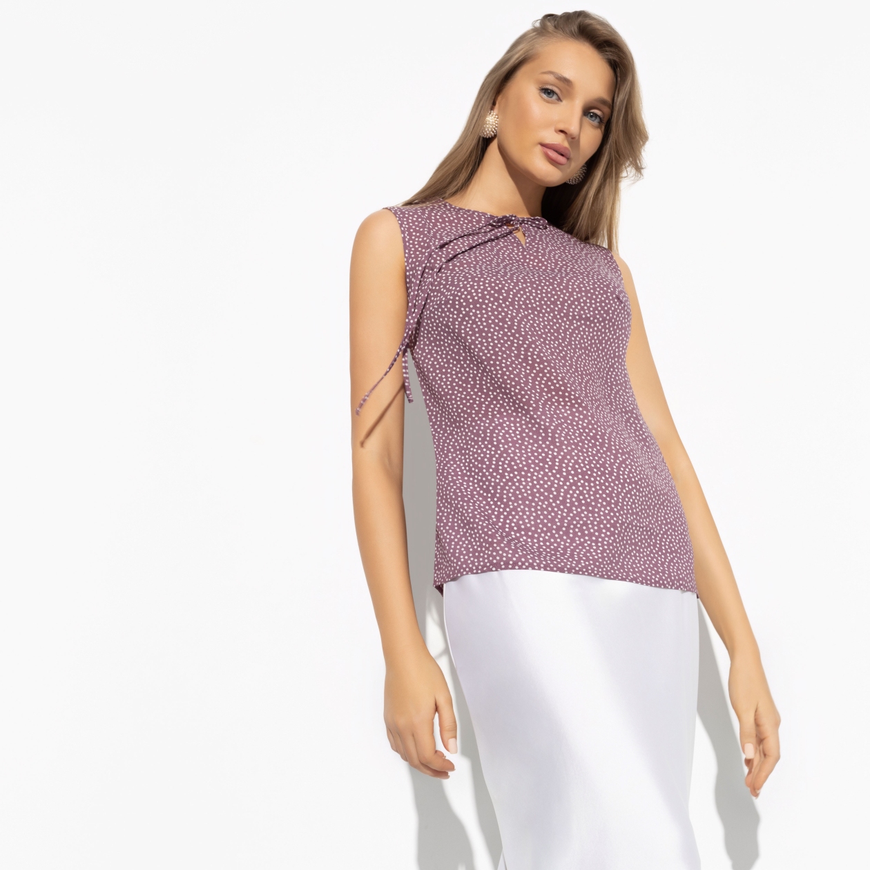 «Горох» – принт вне времени, популярность которого не угасает уже многие десятилетия. Такая блуза без рукавов в прохладное время года будет отличным вторым слоем, а летом - главным элементом образа. Инвестируйте в ваш гардероб!