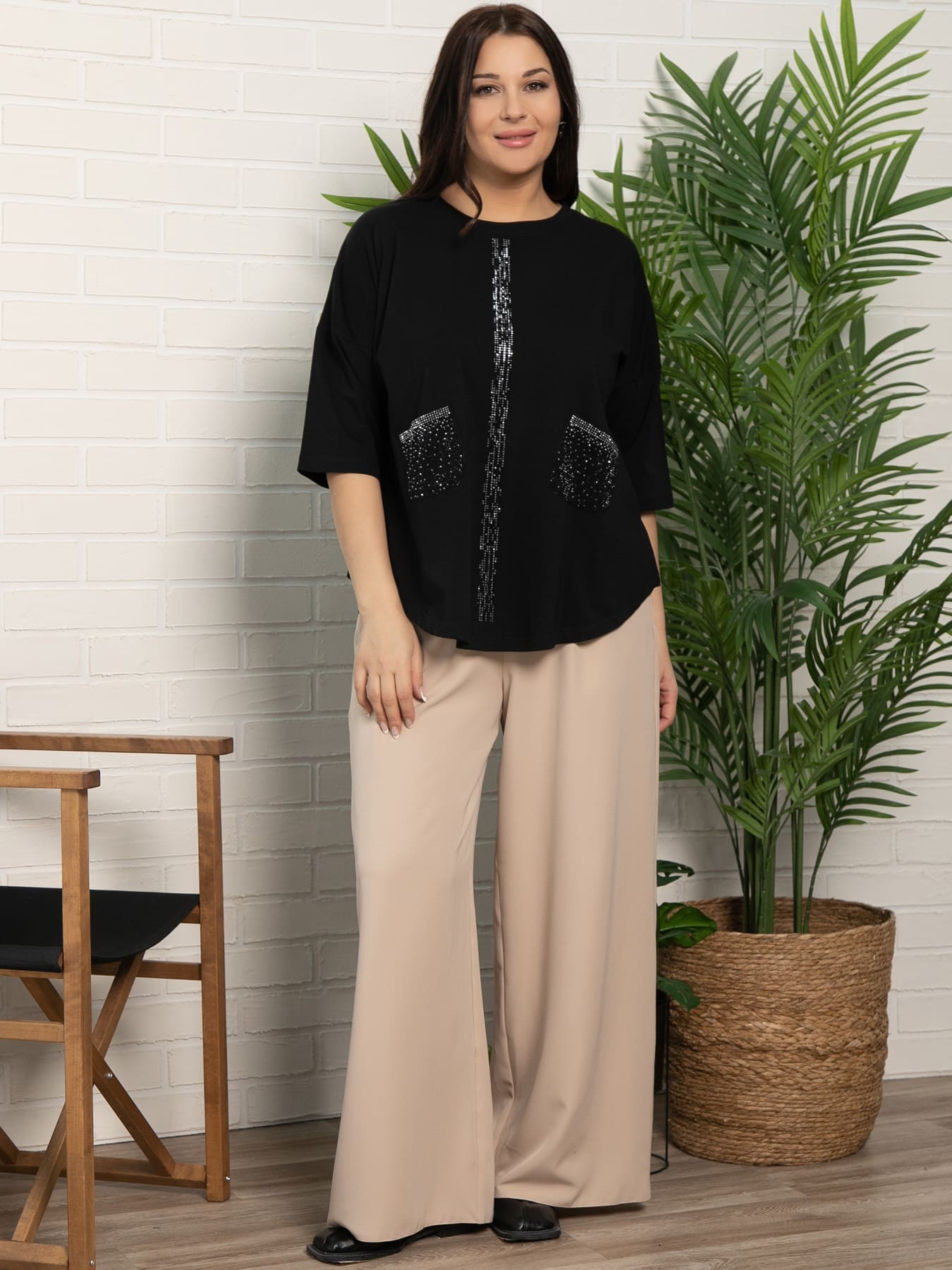 Обновите гардероб этой элегантной и универсальной блузкой, идеально сочетающей в себе комфорт и модный дизайн. Плечо спущено, и рукав длиной 3/4 добавляют непринужденности и легкости образу. Округлая горловина, окантованная обтачкой, придает аккуратный вид. Низ спинки и переда плавно закруглены к боковым швам с обеих сторон. Эта блузка станет отличной основой для повседневных или более торжественных образов, подчеркнув вашу индивидуальность и чувство стиля!