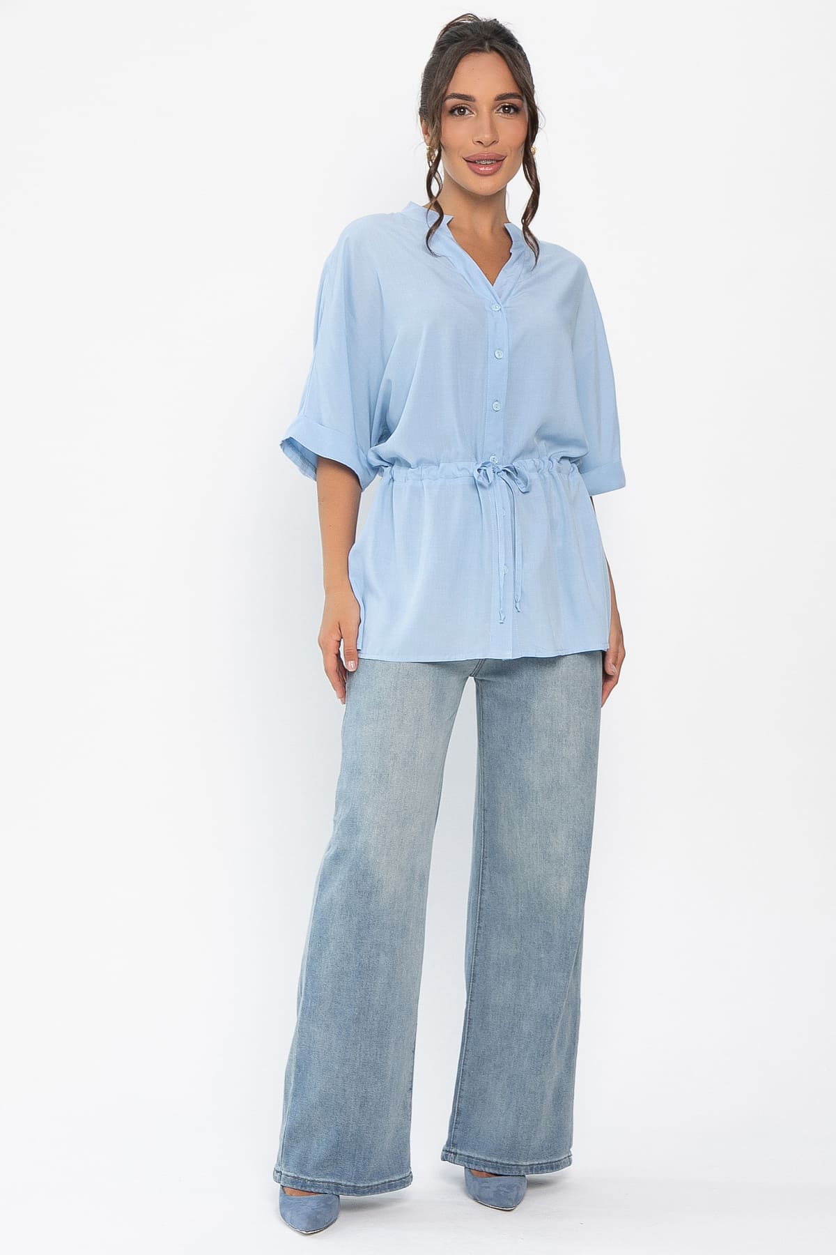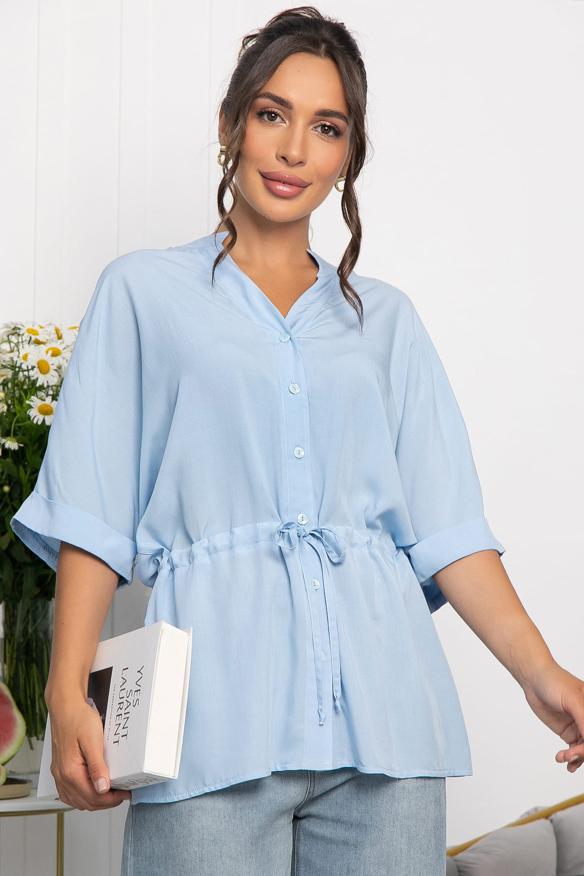 Изящная блуза в однотонной расцветке идеально дополнит ваш летний гардероб. Модель с спущенным плечом и воротником-стойкой придаёт образу утончённый вид. Пояс на талии на кулиске позволяет легко регулировать силуэт, подчеркивая вашу фигуру. Станет вашим любимым элементом гардероба, позволяя легко создавать стильные и комфортные образы для любого случая!
