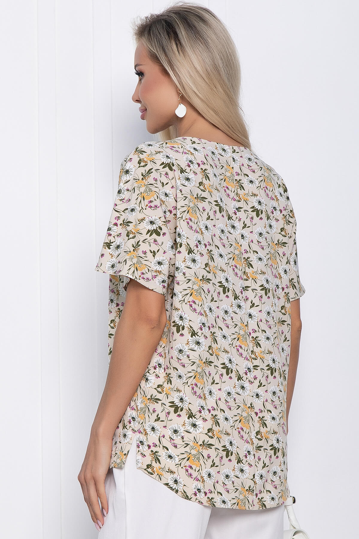 Блузка с цветочным принтом станет отличным дополнением в вашем гардеробе! Её легко сочетать с брюками, джинсами или юбкой. Также можно надеть под пиджак или жакет. Модель свободного кроя с цельнокроеным рукавом и округлым вырезом. Она подходит для повседневных образов и для домашнего использования. Благодаря своему свободному крою она обеспечит комфорт и свободу движения. По бокам разрезы. Передняя часть короче задней.