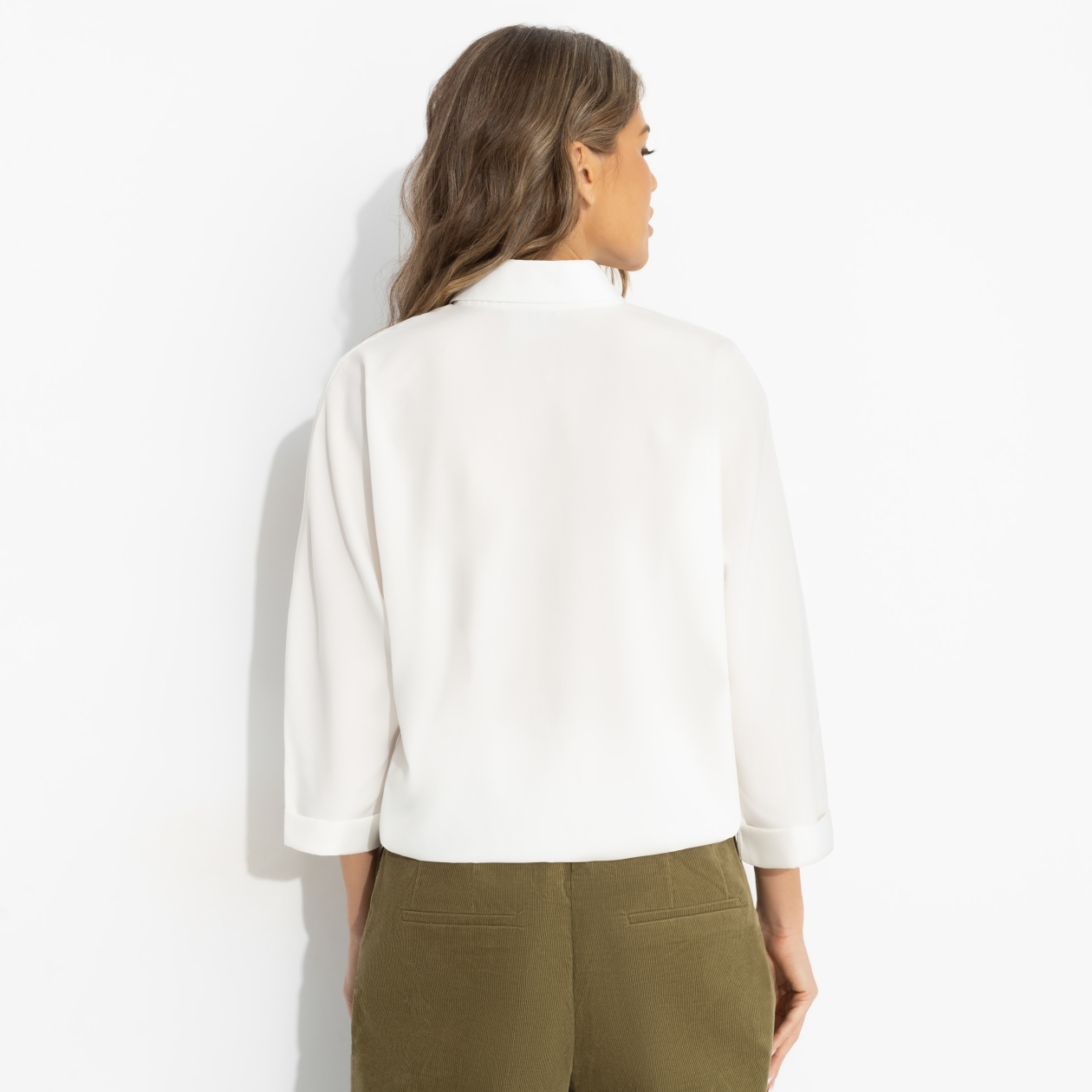 Белый в 2026 году – это не «база», а зявление. На показах Prada и The Row он звучит как знак ясности и внутреннего порядка. Эта блуза моментально переносит вас в утро, когда голова светлая, решения принимаются легко, а внешний вид не отвлекает от главного. Белый здесь не стерильный, а живой. Лёгкая ткань «ниагара» красиво драпируется и мягко движется при ходьбе, а еще легко сочетается с денимом, костюмными брюками, юбками. Вещь для офиса, встреч и тех дней, когда хочется чистоты в образе.