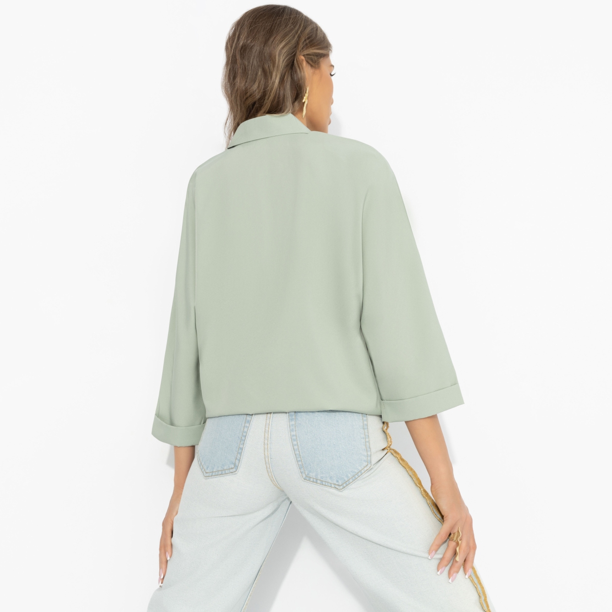Почему героини, которые всё держат под контролем, редко носят яркие цвета? Хаки – выбор женщин с внутренним стержнем. Его любят и Виктория Бекхэм, и персонажи сериалов о сильных, деловых женщинах. Эта блуза – про устойчивость и собранность. Про стиль, который не требует одобрения и не зависит от обстоятельств. Мягкая «ниагара» пластично ложится по фигуре и комфортна в носке. Оттенок хаки легко комбинируется с чёрным, молочным, коричневым и денимом. Универсальный вариант для города и офиса.