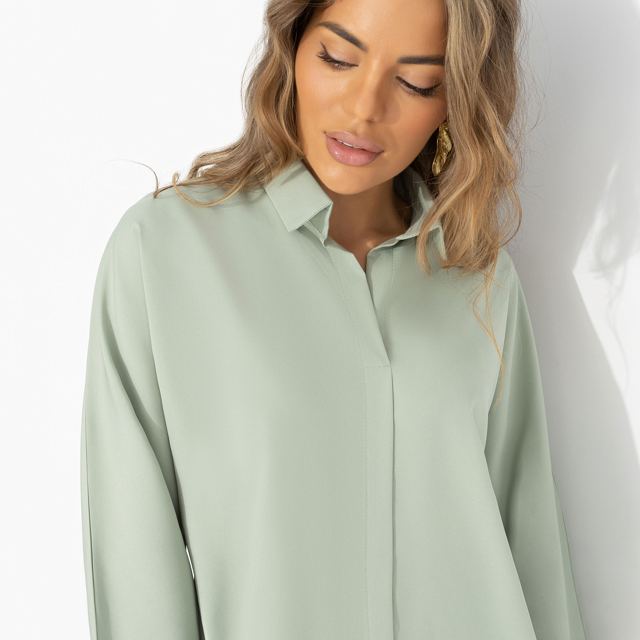 Почему героини, которые всё держат под контролем, редко носят яркие цвета? Хаки – выбор женщин с внутренним стержнем. Его любят и Виктория Бекхэм, и персонажи сериалов о сильных, деловых женщинах. Эта блуза – про устойчивость и собранность. Про стиль, который не требует одобрения и не зависит от обстоятельств. Мягкая «ниагара» пластично ложится по фигуре и комфортна в носке. Оттенок хаки легко комбинируется с чёрным, молочным, коричневым и денимом. Универсальный вариант для города и офиса.