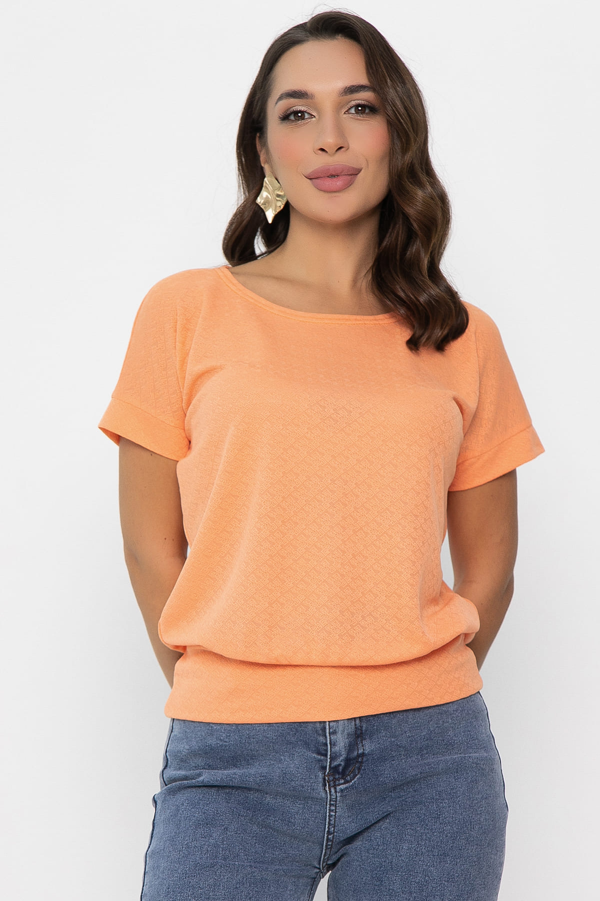 Встречайте изысканную блузку в оранжевом цвете. Этот элемент гардероба станет вашим универсальным спутником. Свободный крой обеспечивает удобство и свободу движений, а круглый вырез добавляет образу элегантности. Спущенный рукав с притачной манжетой придает модели особый шарм. Низ блузы на широкой ножке.