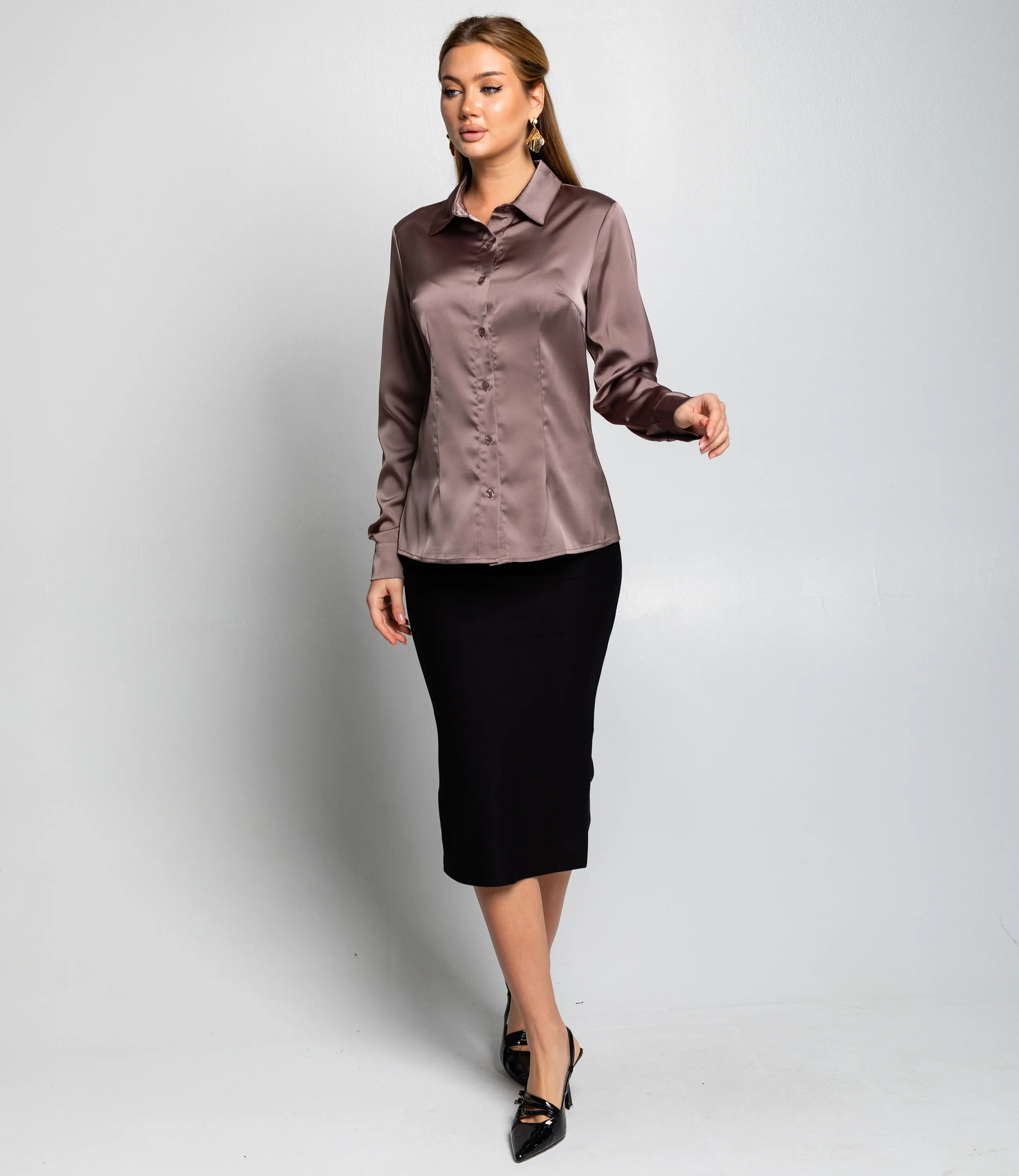 Блуза — это часть гардероба, которая подчёркивает женственность любой женщины. Модель — классическая блуза с втачными длинными рукавами и застёжкой на пуговицы спереди; обычный воротник добавляет универсальности, делая изделие подходящим как для делового стиля, так и для повседневных ансамблей. Крой строгий, но женственный, подчёркнут аккуратными вытачками для идеальной посадки по фигуре. Для пошива использована ткань: 95% полиэстер, 5% спандекс. Материал гладкий и слегка блестящий, хорошо тянется и сохраняет форму благодаря добавлению спандекса; полиэстер обеспечивает износостойкость и простоту ухода. Даже после многократных стирок блуза не утратит первоначальной аккуратности и презентабельного вида при соблюдении рекомендаций по уходу. Изделие выбирают покупательницы, которые ценят сочетание качества и разумной цены. Цвета глубокие и насыщенные, полностью соответствуют фотографиям на странице, что важно при комплектовании витрины. На странице представлена таблица размеров — с её помощью вы сможете самостоятельно снять мерки и подобрать нужные размеры для клиенток. Мы предлагаем выгодные оптовые условия, гибкую ценовую политику и надёжные поставки для ваших магазинов. Установленная нами цена адекватна и позволит вам формировать привлекательную наценку и обеспечивать высокую оборотность. Предложите своим покупательницам блузу, сочетающую в себе качество, комфорт и универсальную элегантность.