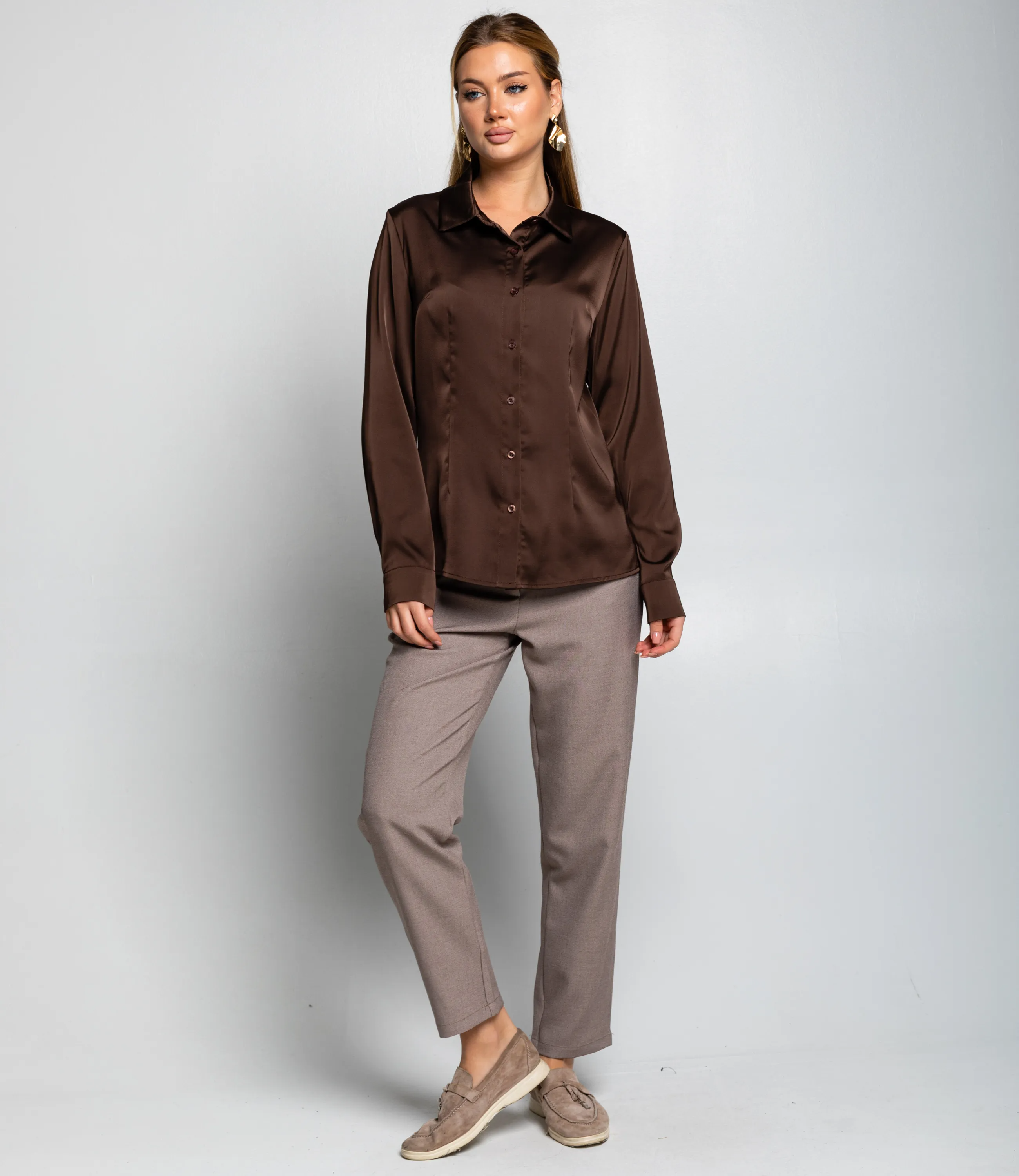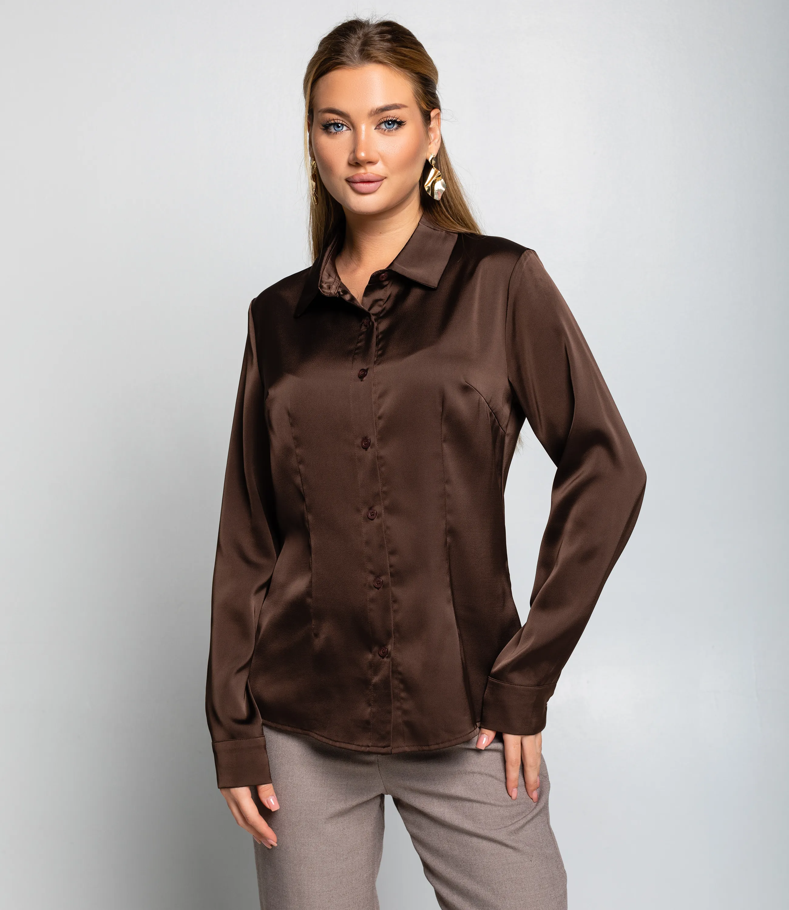Блуза #ОКТ025022, тёмно-коричневый