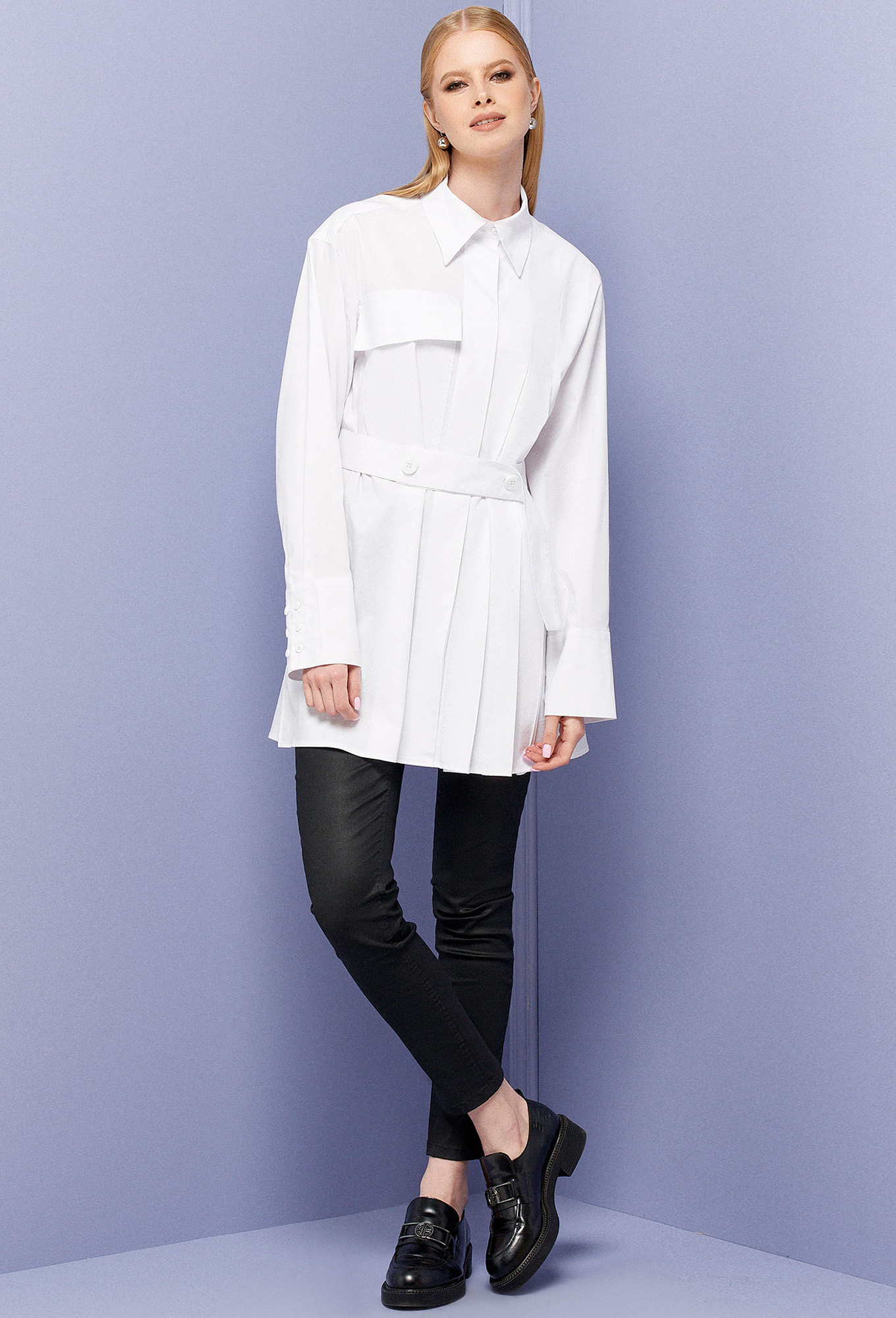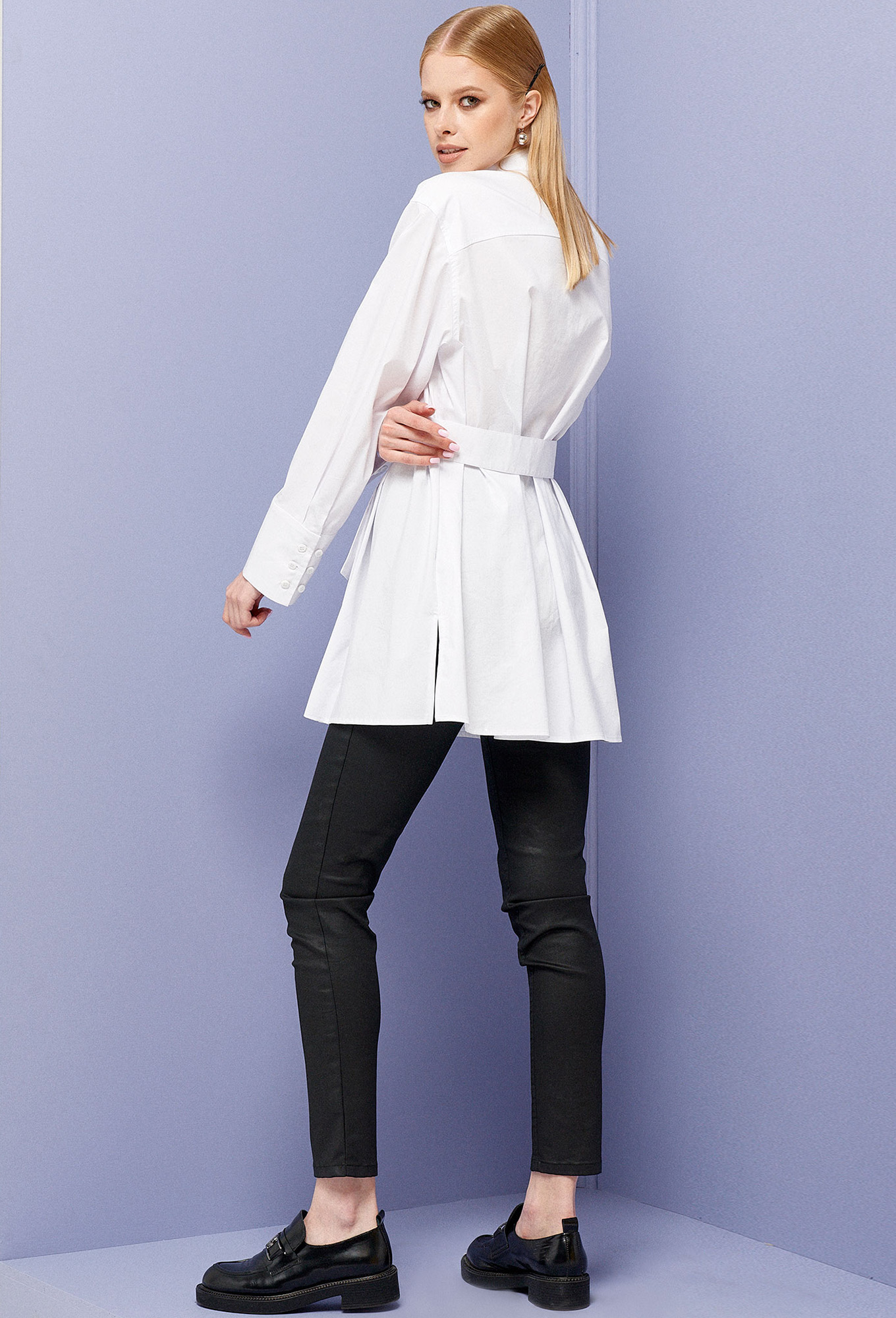 Модель: Панда 106240 белый Рост: ..показать164 см (девушка на фото ростом 164см) Сезон: Круглогодичный Тип ткани: Хлопок 76%, полиэстер 22%, эластан 2%Блузка с длинным рукавом. Визуально, блуза похожа на тунику или короткое платье. Широкие манжеты завершают длинный рукав, отложной воротник, зрительно удлиняют шею, клапан на груди, имитирует карман. Чтобы подчеркнуть линию талии, модельеры предусмотрели пояс, выполненный из основной ткани.