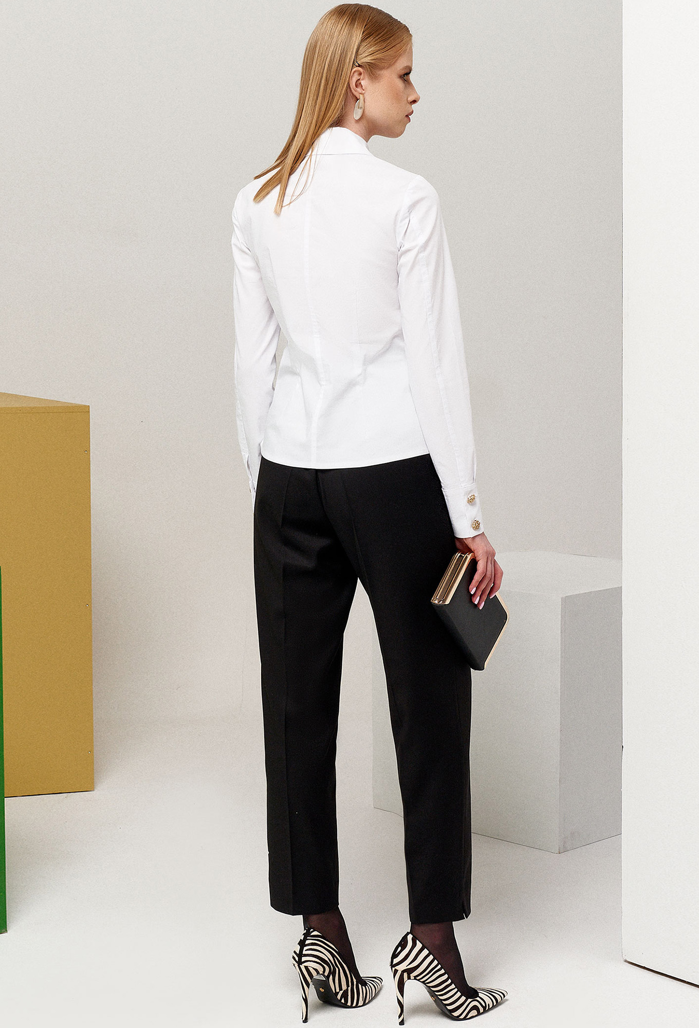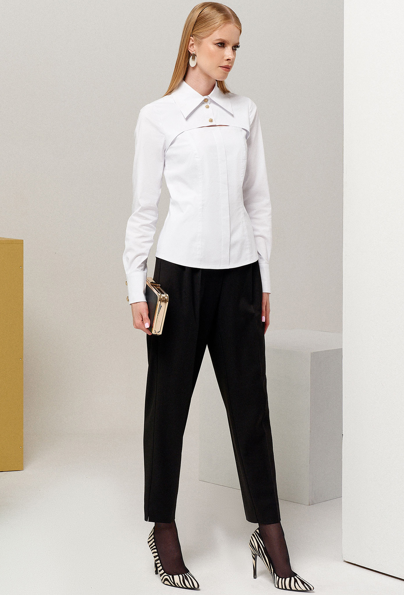 Модель: Панда 117740 белый Рост: ..показать164 см (девушка на фото ростом 164см) Сезон: Круглогодичный Тип ткани: Хлопок 76%, полиэстер 22%, эластан 2%.Блузка с длинным рукавом - это классика. Силуэт приталенный. Базовая блузка без рисунка и карманов подойдет для холодного лета и теплой осени, зимы и весны. Блузка из хлопковой ткани с оригинальным воротником.