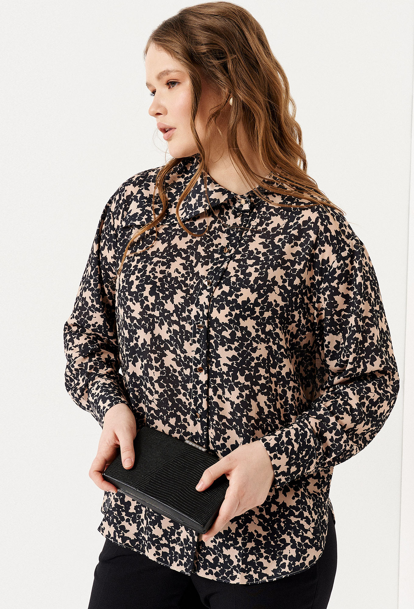 Модель: Панда 123140 черно-бежевый ..показатьi>Рост: 164 см (девушка на фото ростом 164см) Сезон: Круглогодичный Тип ткани: Полиэстер 100%Нарядная женская блузка с анималистическим принтом прекрасно дополнит ваш гардероб. Блузка на пуговицах, закруглена по нижнему краю, дополнена отложным воротником.